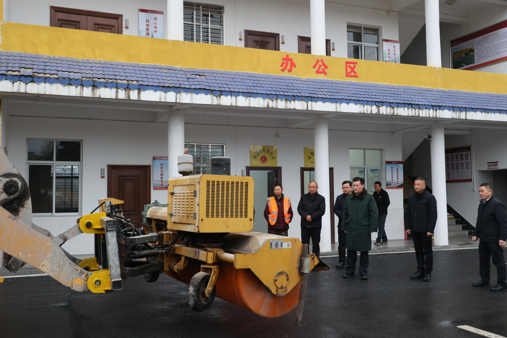 在马港公路养护站,杨修伟仔细检查应急物资储备情况,要求进一步加强重点路段巡查监测,全力保障公路安全畅通。