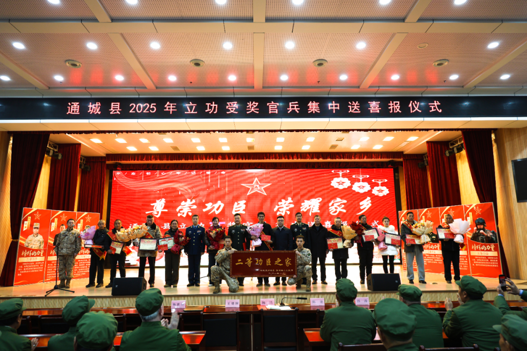 【全媒体记者 卢文浩 通讯员 王石恩】1月20日,通城县举行2025年度现役军人立功受奖人员集体送喜报暨国防教育主题活动,深入贯彻落实新时代拥军优属政策,弘扬爱国拥军传统,增强军人军属荣誉感,营造“一人参军、全家光荣,一人立功、全县尊崇”的浓厚氛围,激励广大适龄青年投身军旅、报效国家。县委常委、常务副县长杨昌出席会议并讲话。县委常委、县人武部部长王建国,县人武部政委陈建出席会议。