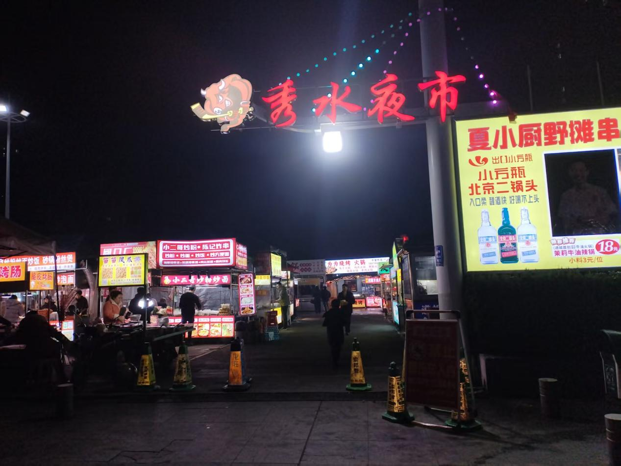 经过数日集中整治,秀水社区环境面貌焕然一新:累计清理各类垃圾5余吨,整治卫生死角30余处,拆除违规、破旧广告18块,夜市的50余盏亮化灯全部检修更换完毕,霓虹闪烁的灯带与整洁有序的商铺相映成趣。社区还巧用清理出的闲置空间,联合商户打造了“新春打卡角”,红灯笼、中国结、生肖马等装饰点缀其间,成为市民拍照留念的热门地点。“没想到家乡变化这么大,夜市又干净又漂亮,一回家就忍不住来打卡了!”提前返乡的大学生小张拿着手机记录着夜市新貌,言语间满是自豪。
