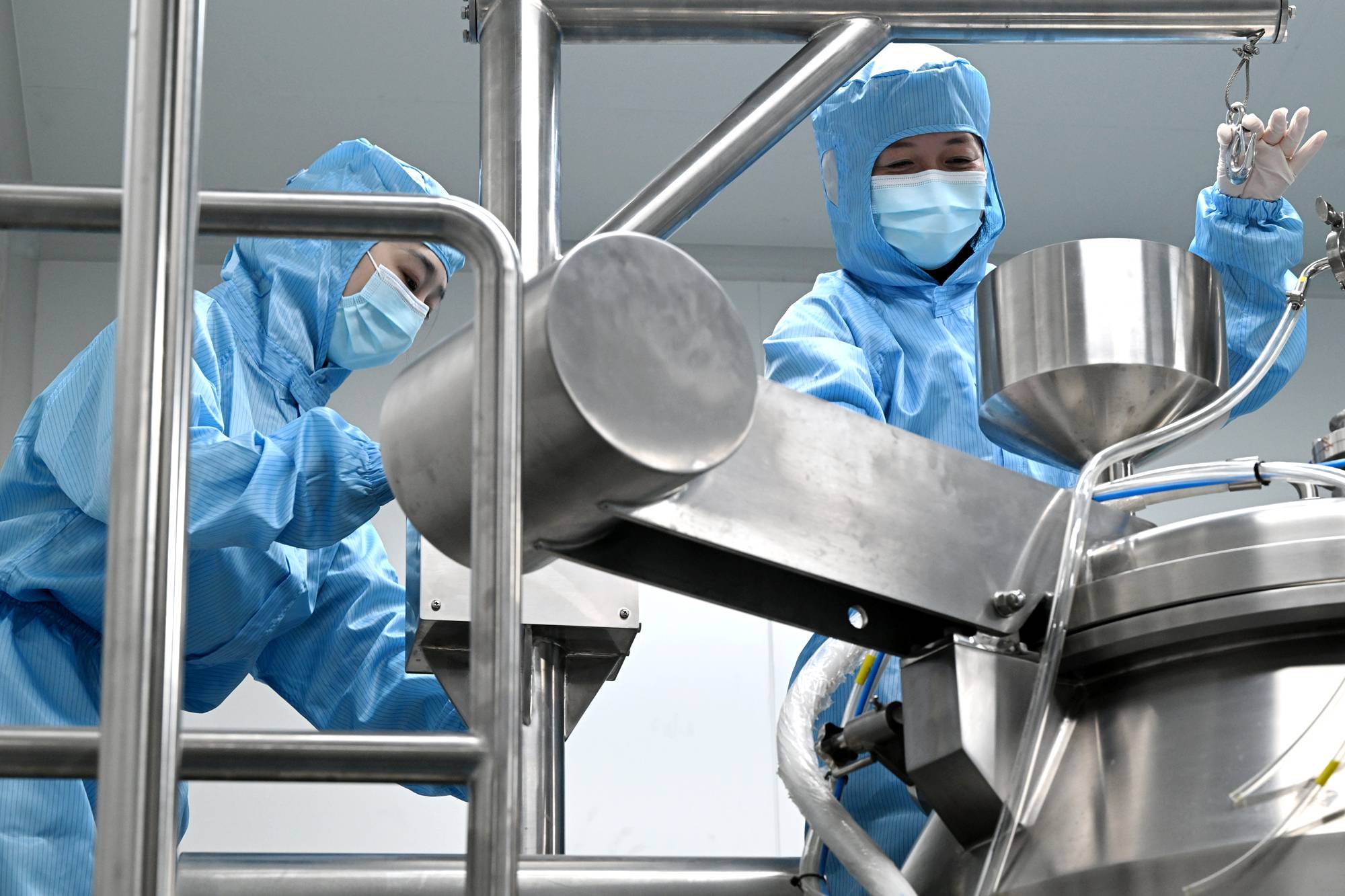 生产车间内,是另一番景象。身着全套洁净服的技术人员,在全封闭的自动化生产线前专注操作。
