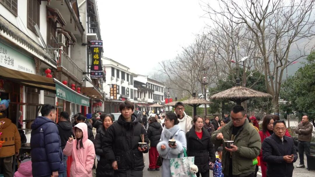 客流的持续攀升,离不开景区全方位的精心保障。为应对新春客流高峰,药姑山古瑶村景区提前谋划、周密部署,在入口、停车场、游览路线等关键点位增派工作人员与志愿者值守,优化停车引导、便民服务等各项举措;同时联合公安、文旅等相关部门加强巡逻管控,全方位确保景区交通顺畅、环境整洁、游览安全,为游客营造了安全、有序、舒适的游览环境。