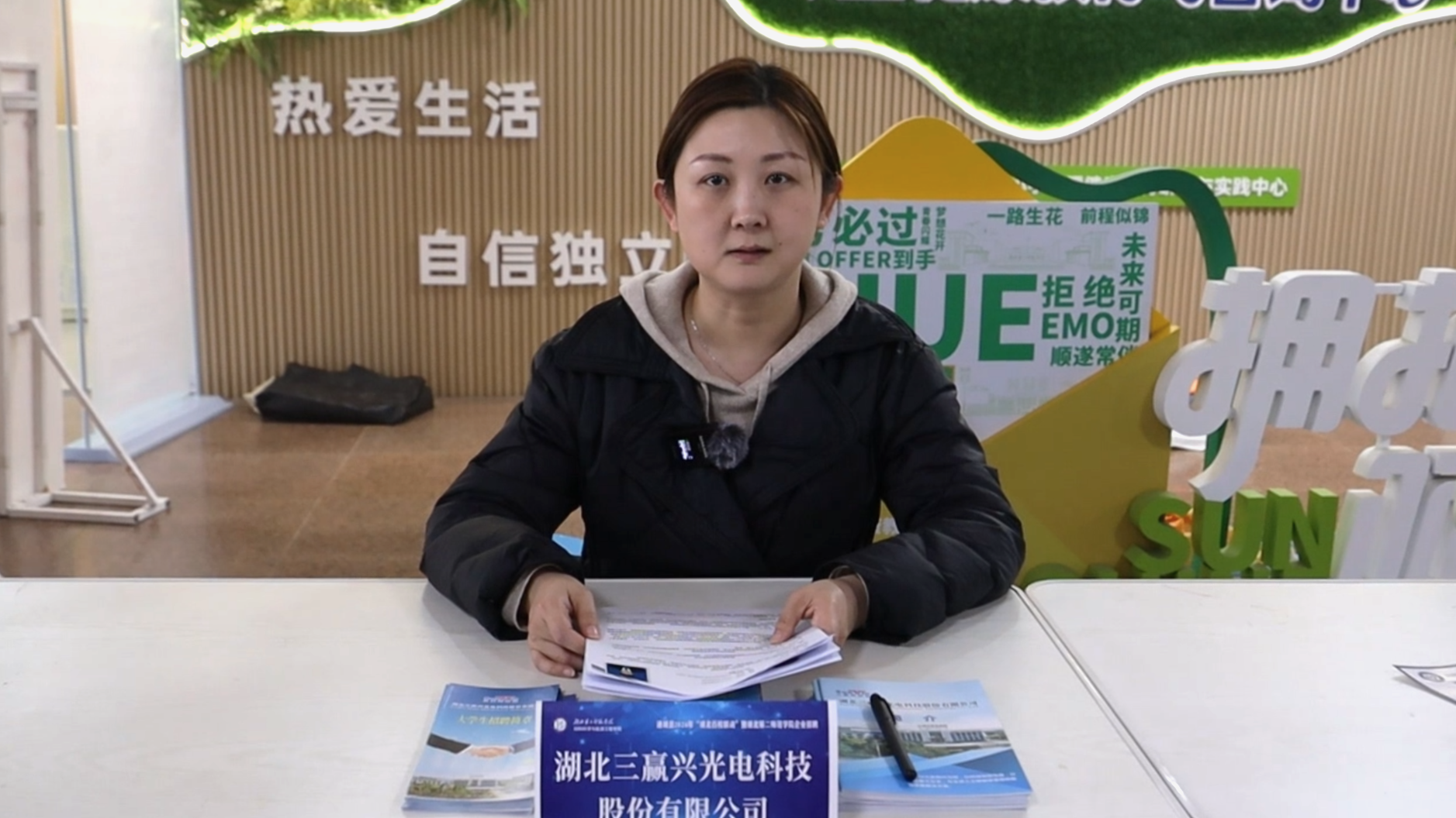 湖北三赢兴光电科技股份有限公司招聘专员 聂真:我们是湖北三赢兴光电科技股份有限公司,目前有空缺的岗位是工艺技术部,希望相关专业的同学能够向我们投递简历,到现场进行一个产业的直接了解。