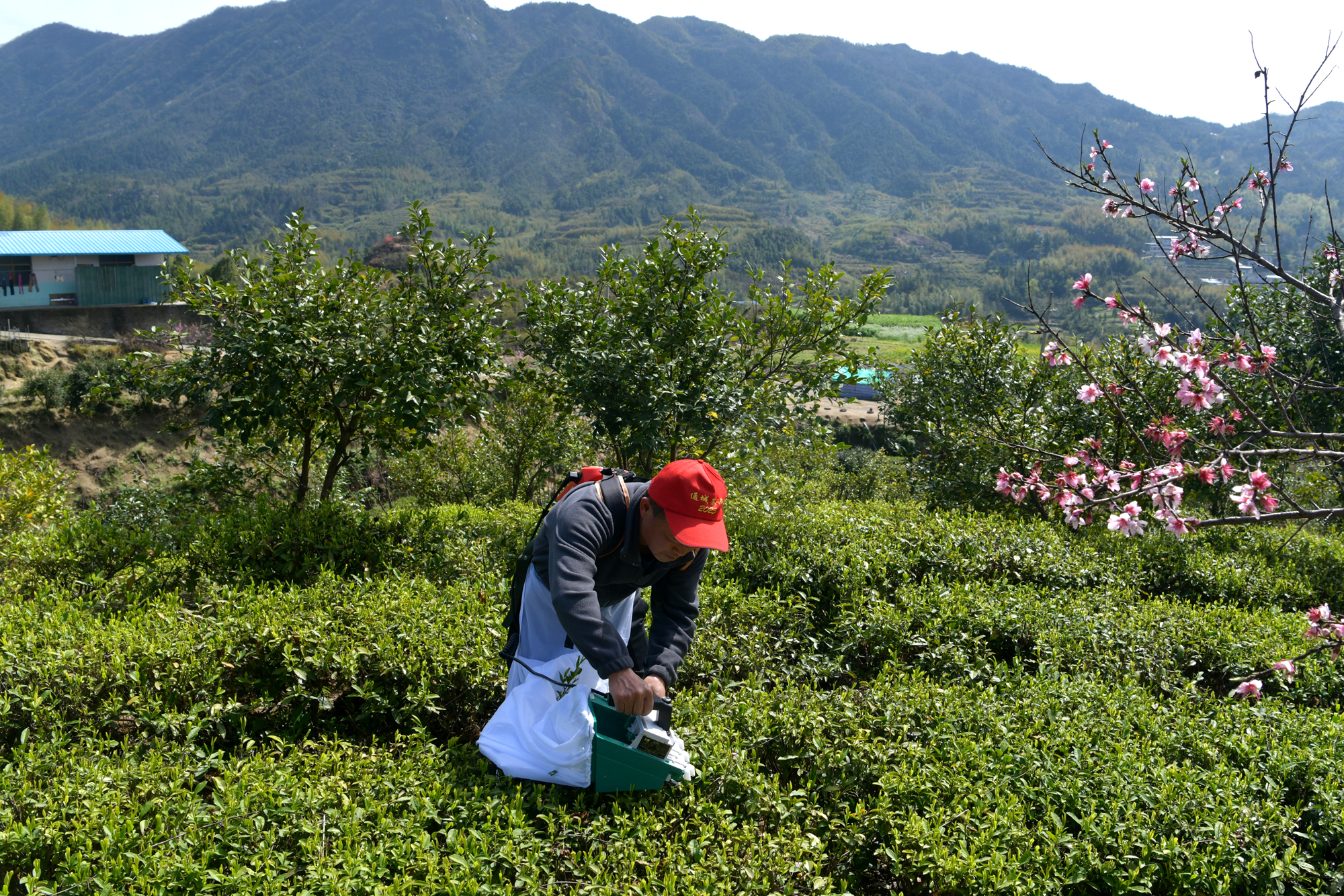 电动采茶机采茶。