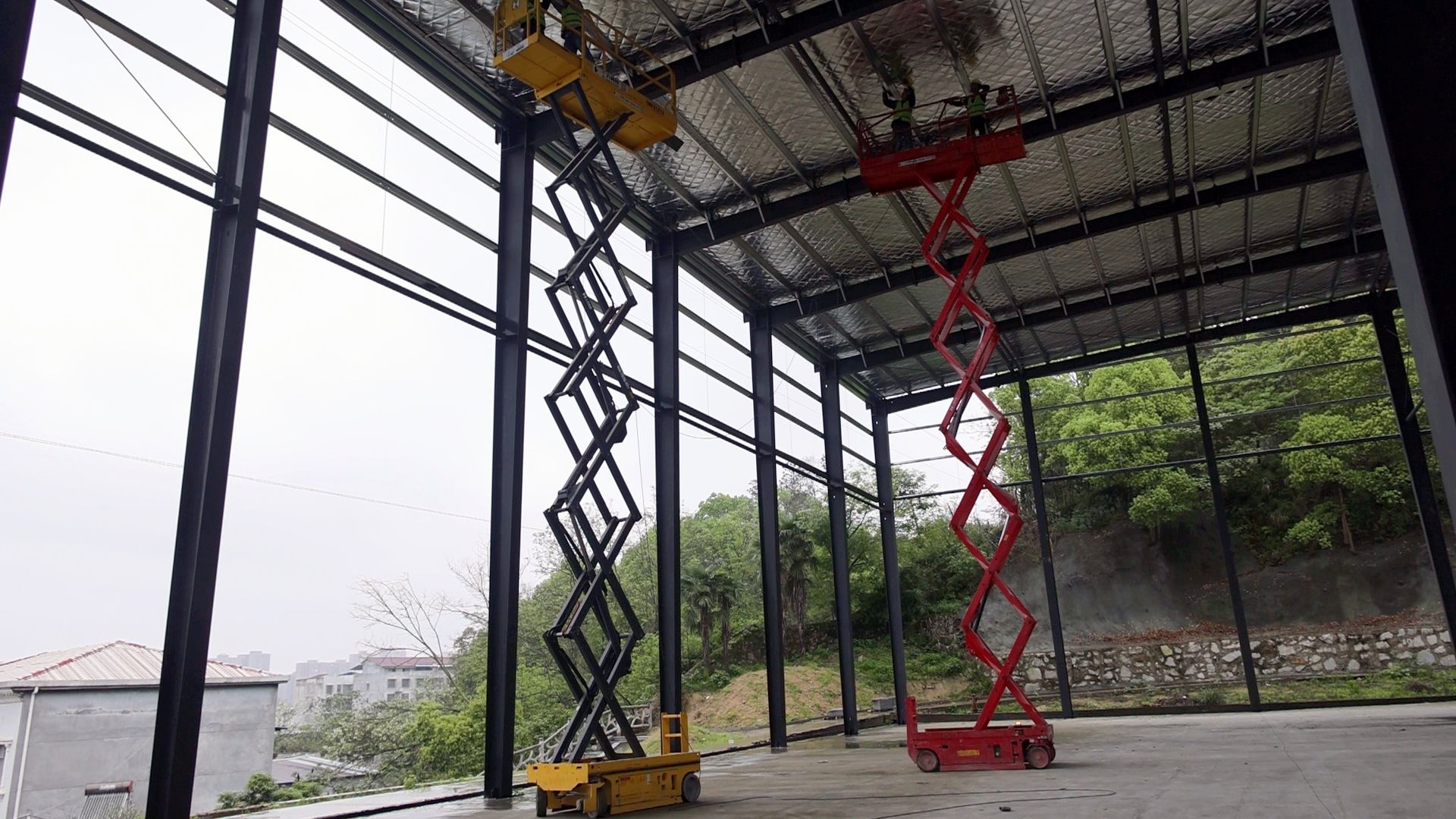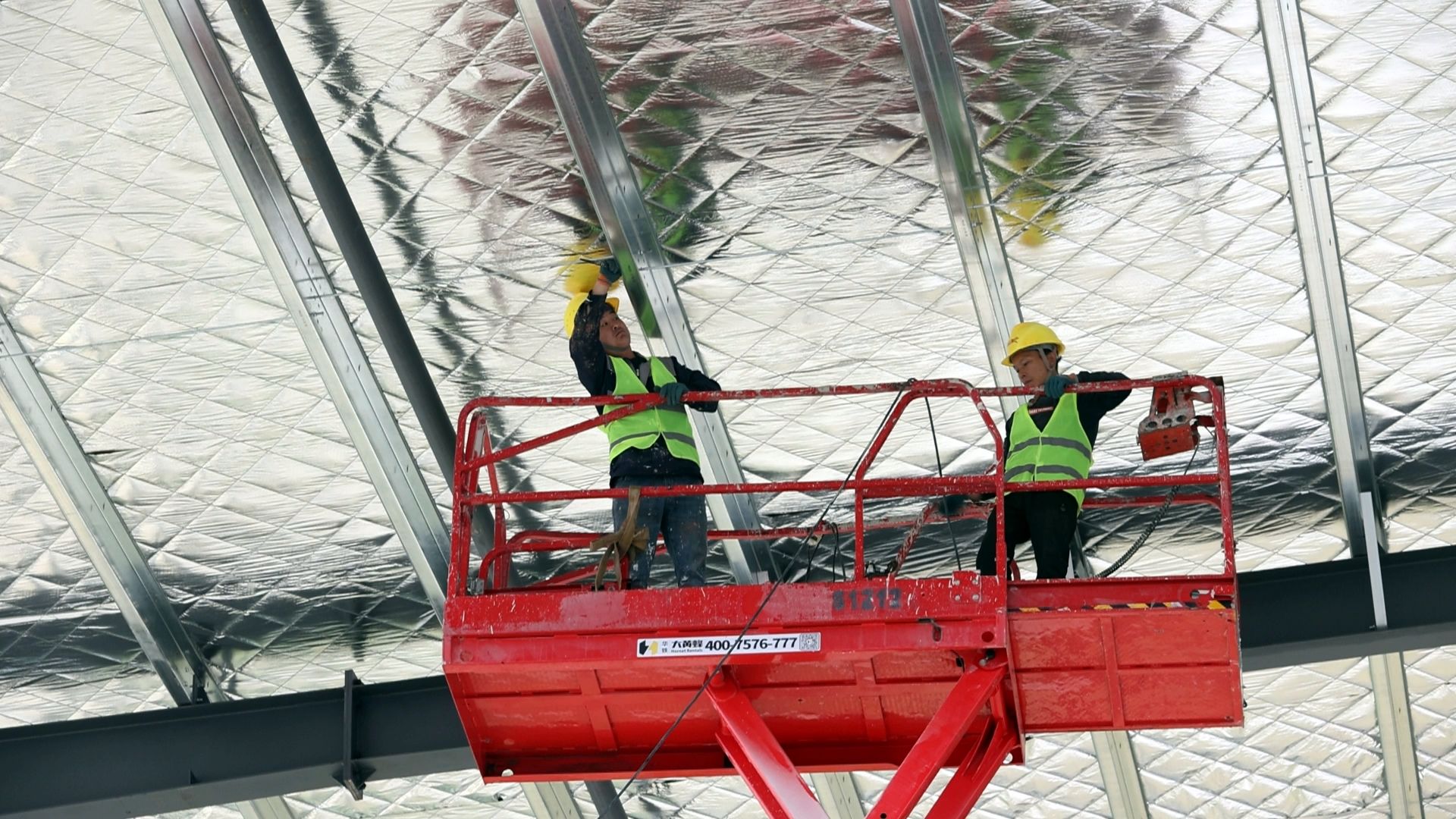 通城县锡山体育公园(一期)建设项目现场负责人 习高荣:锡山体育公园球场钢结构已完成钢立柱吊装、檩条、拉杆、屋面彩钢安装工作,施工进度已完成80%以上,目前正在进行墙面彩钢板及围网的安装。