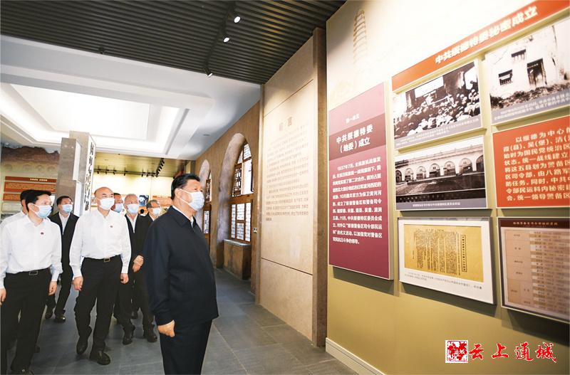 2021年9月13日至14日,中共中央总书记、国家主席、中央军委主席习近平在陕西省榆林市考察。这是14日上午,习近平在中共绥德地委旧址考察。 新华社记者 李学仁/摄