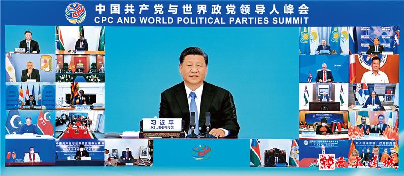2021年7月6日,中共中央总书记、国家主席习近平在北京出席中国共产党与世界政党领导人峰会并发表主旨讲话。 新华社记者 李响/摄