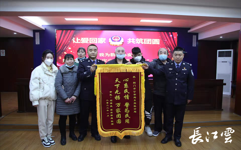 认亲仪式上,刘泽良、蒋燕夫妇抱着“失而复得”的儿子泣不成声。“真的非常感谢你们,这锦旗和感谢信代表我们的心意!”夫妻俩紧紧握住民警的手,反复表达着感激之情。这是东宝警方自去年开展“团圆行动”以来举行的第二场认亲仪式。