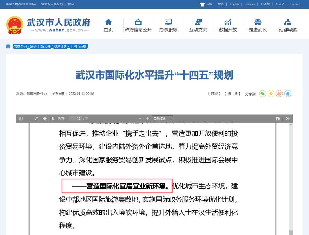 去年底,《武汉市国际化水平提升“十四五”规划》正式发布。