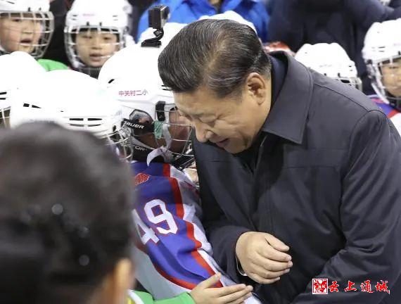 2017年2月23日至24日,习近平在北京考察。这是24日上午,习近平在五棵松体育中心同青少年冰球爱好者“撞肩”,表示相互问候。新华社记者 丁林 摄