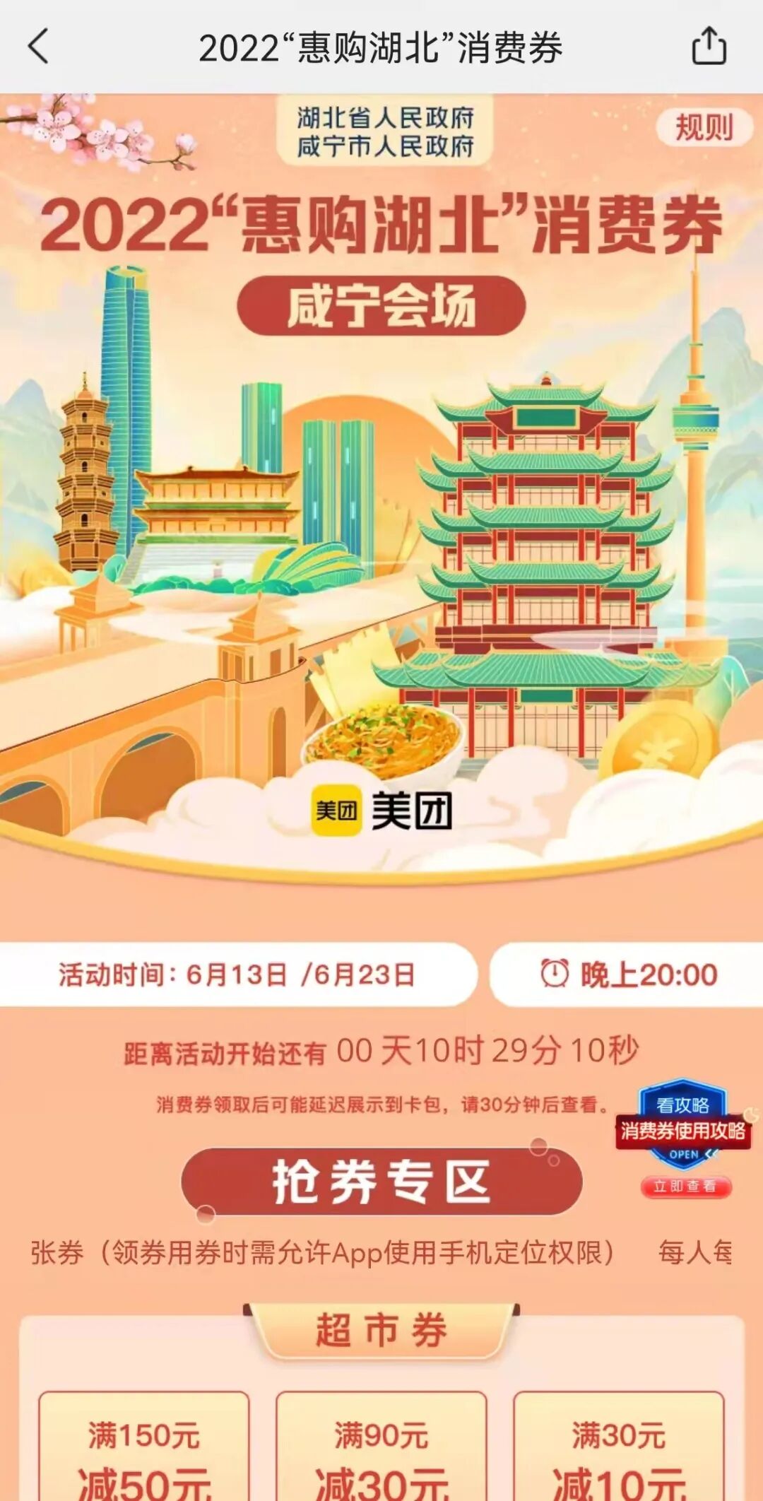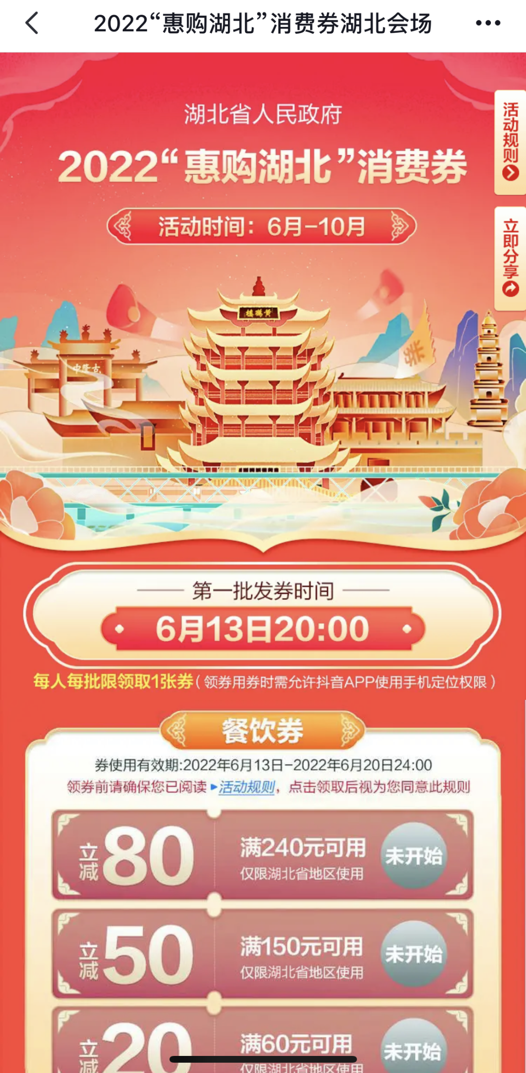 昨日,记者从市商务局获悉,根据全省统一安排,2022“惠购湖北”消费券首轮首期消费券将于6月13日20:00正式投放。