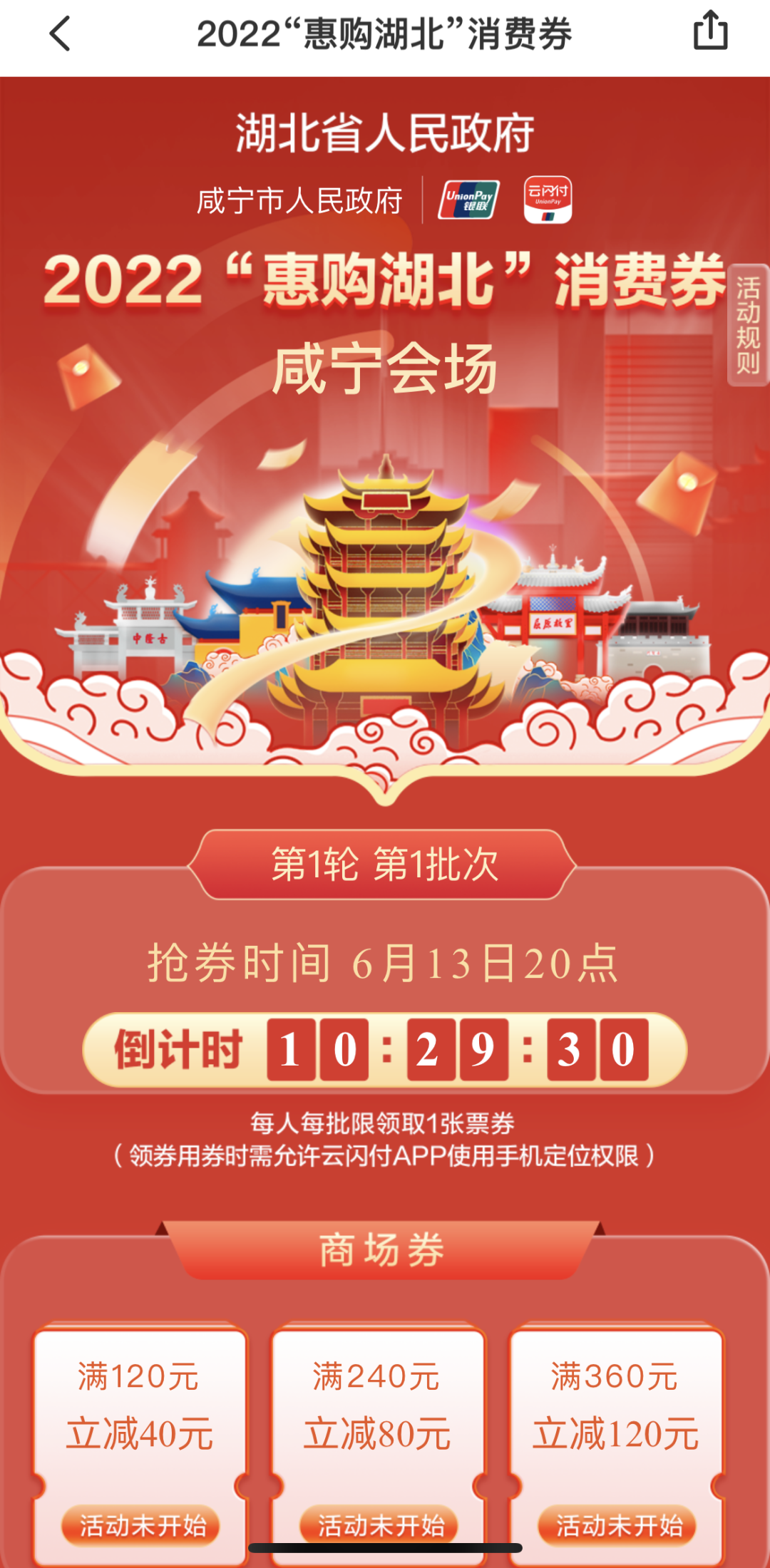 首轮消费券分2批发放,6月13日20时投放第一批,6月23日20时投放第二批。