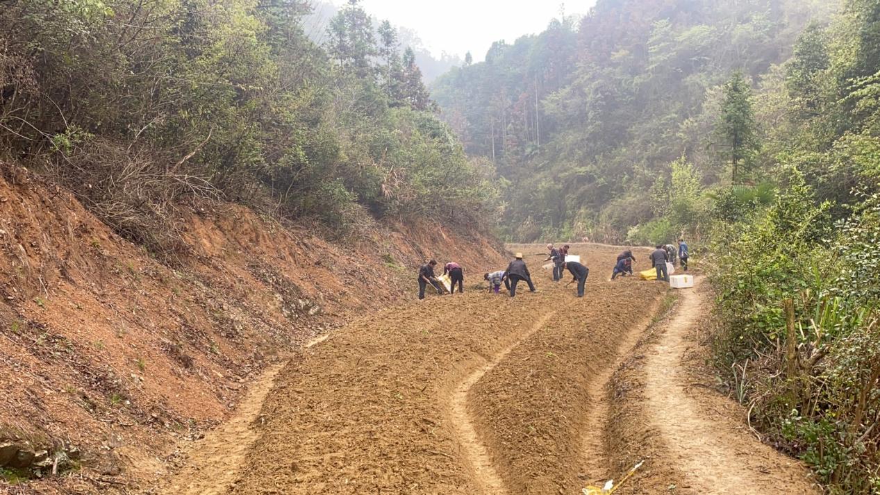 大溪村山多林密,素来有种植药材的传统。为壮大村集体经济,打造中药材村,大溪村村委会去年已经种植药材百余亩,今年又整理出撂荒地八十余亩,引入黄精、白芨苗1万余斤,趁着清明前后的好天气种下去。