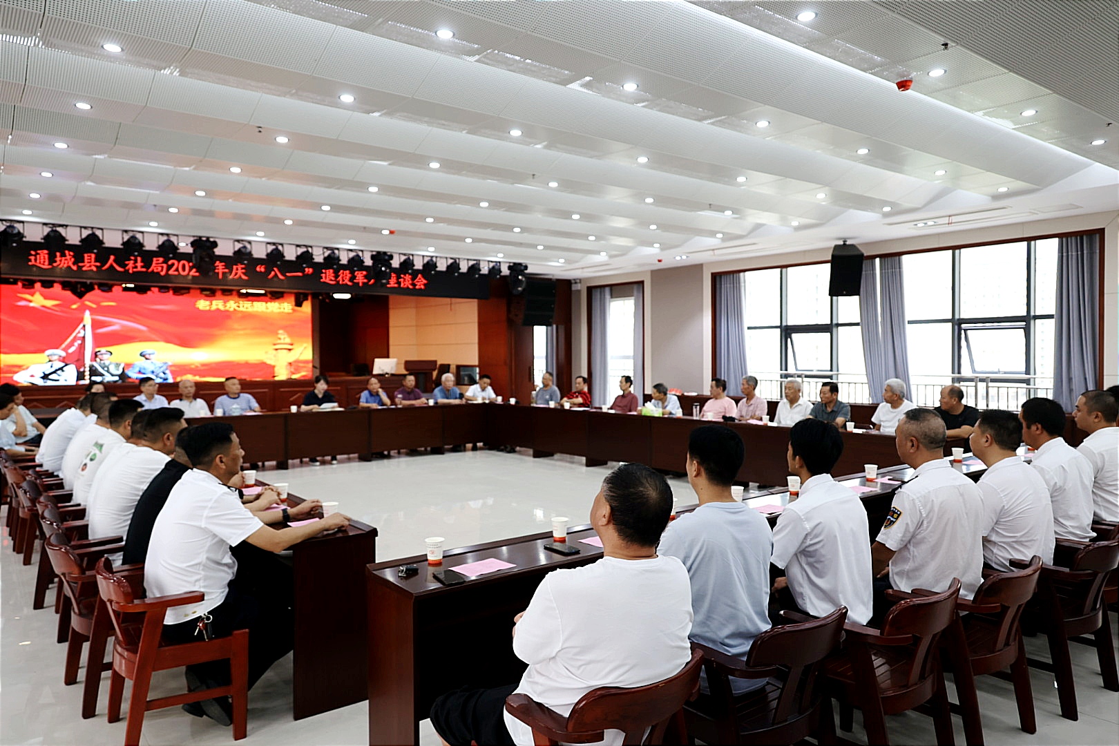 【全媒体记者 李索】8月1日,通城县人社局举行2023年庆“八一”退役军人座谈会。县人社局全体退休及在职退役军人参加座谈会。