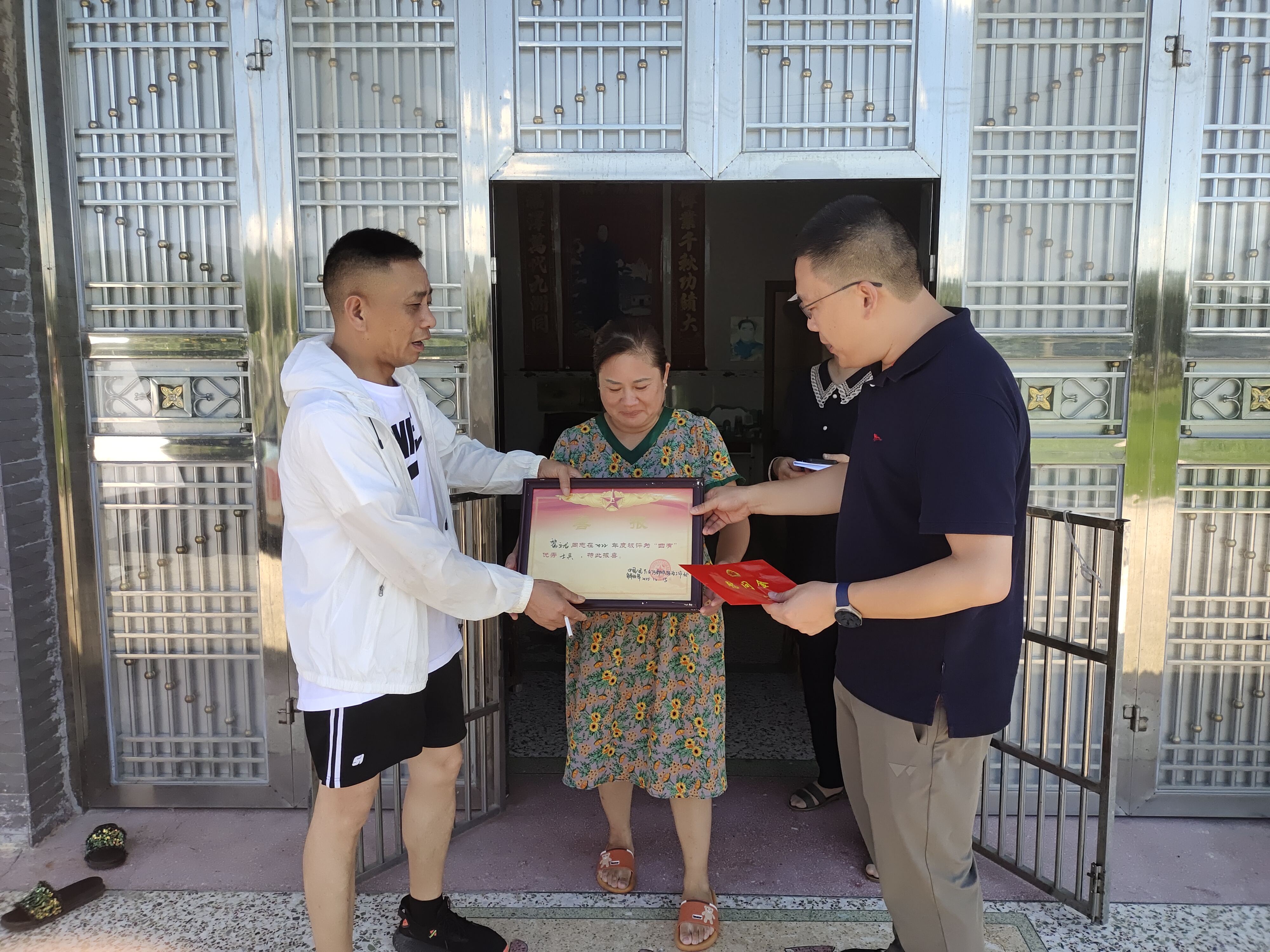慰问人员一行先后来到牌合村优秀士兵黎文龙和黎梦家中,与家属进行亲切交谈,详细了解他们的生产生活情况与健康状况,关切询问生活中需要解决的实际困难,并为他们送上慰问金和喜报,感谢他们为部队、为祖国培养了优秀的军事人才。