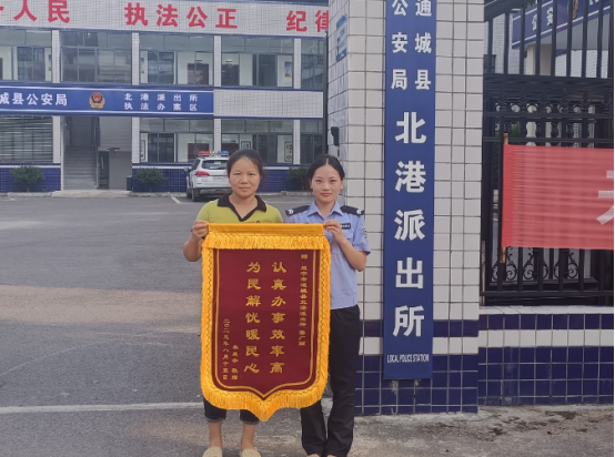近日,朱女士特意委托贯通城县北港镇青村村委会工作人员将一面印有“认真办事效率高,为民解忧暖民心”的锦旗送至北港派出所户籍辅警姜广丽的手中,为其周到服务、为民解忧的工作作风点赞。