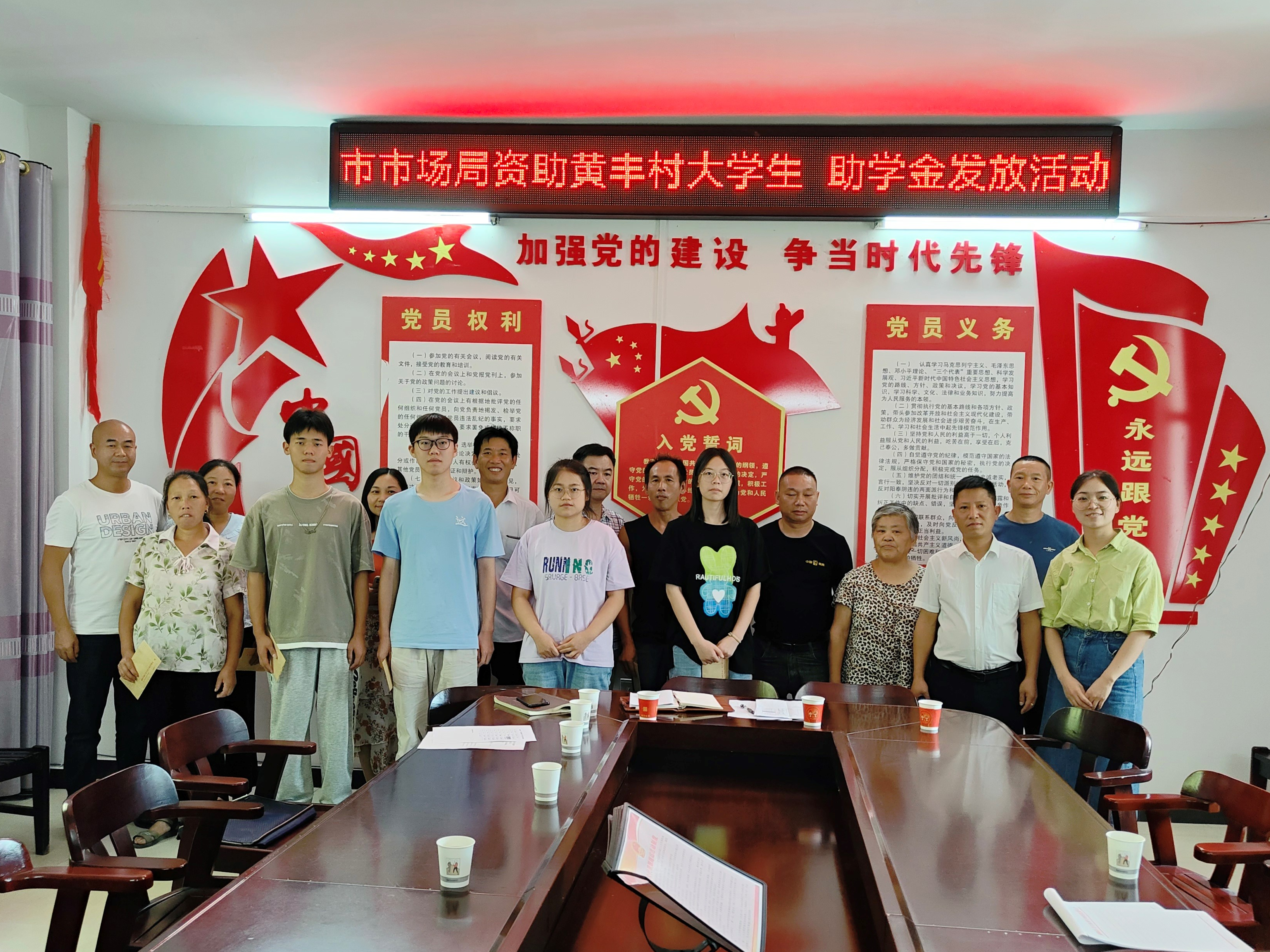 【通讯员 吴倩】8月23日,咸宁市市场监督管理局在通城县关刀镇黄丰村举行助学金发放仪式,为该村8位优秀学子发放1万元助学奖学金。驻村第一书记赵腾同志向优秀学子及家长表示祝贺,鼓励受助学子常怀感恩之心,常抱奋勇之志,刻苦学习,追逐梦想,用青春和汗水回报社会和家乡。