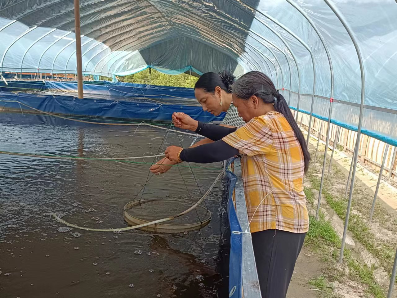 “我们从今年 6月份开始对南美白对虾进行集约绿色生态养殖,是通城县首个实施 ‘大棚帆布池设施化多营养层级循环水养殖技术’的水产养殖基地。”养殖场负责人余新保说。