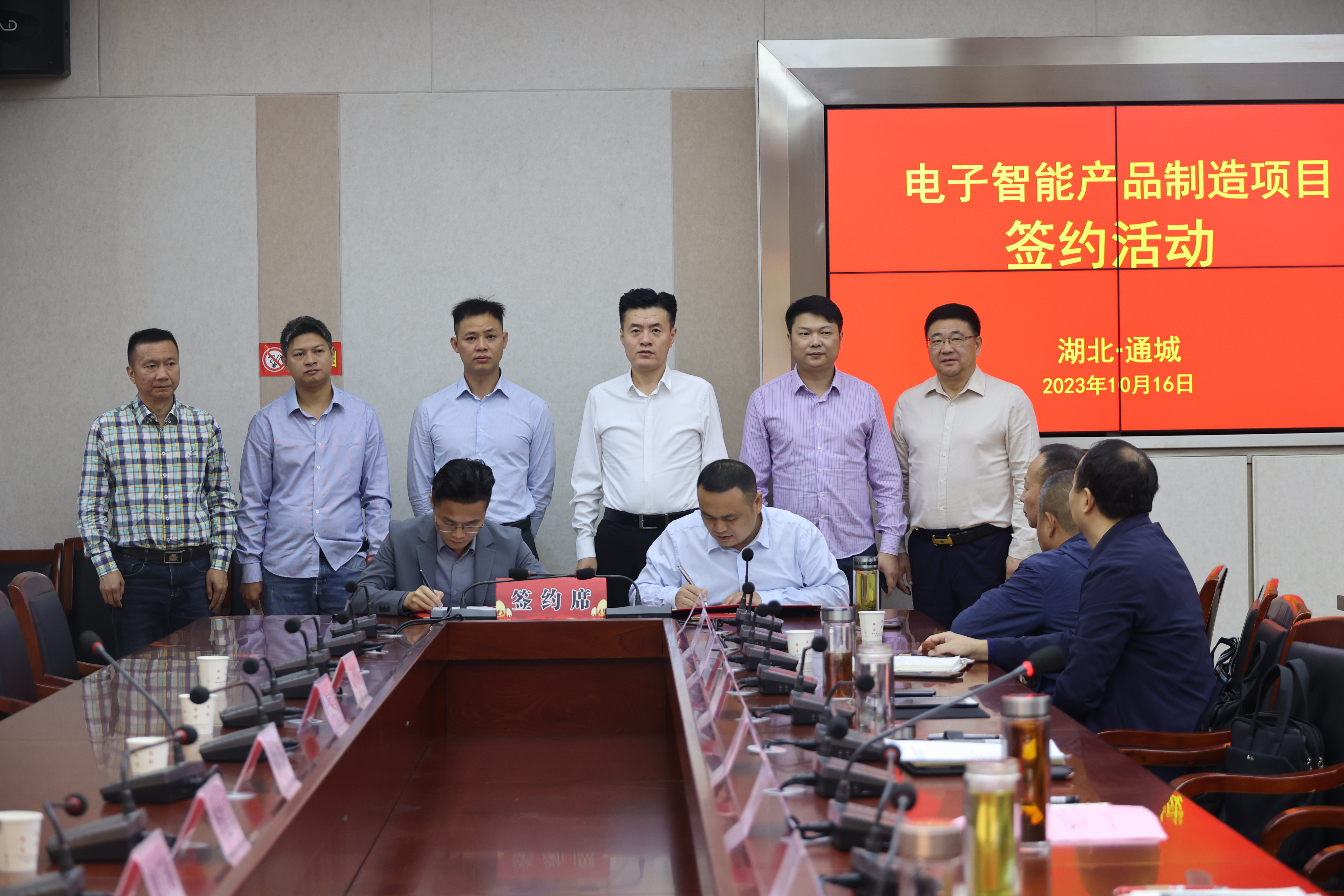 【全媒体记者 周志鹏】10月16日,深圳市戴讯通信设备有限公司电子智能产品制造项目签约仪式在通城县委小礼堂举行。县委副书记、县长杨修伟,县领导王功辉、续红林,深圳市戴讯通信设备有限公司总经理俞波出席签约仪式。