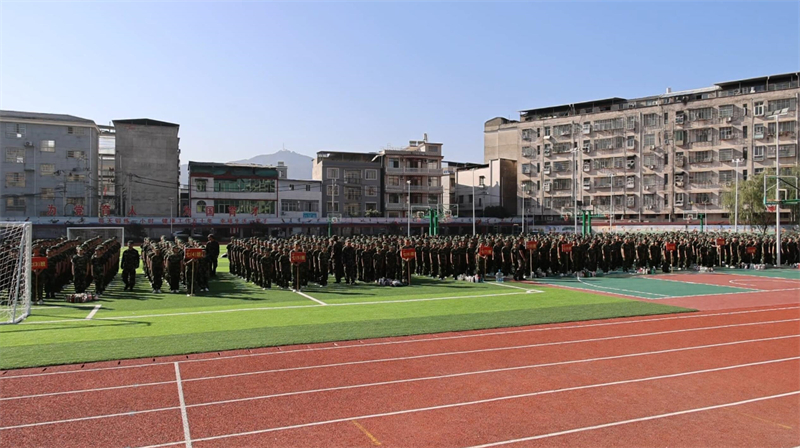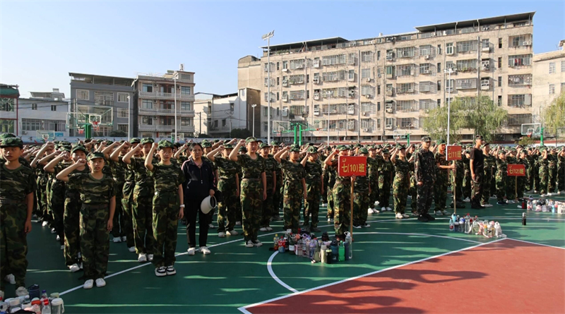 【全媒体记者 卢耀武】10月17日,通城县隽水初中七年级军训在该校运动场拉开帷幕,867名新生将开展为期4天的军事化训练。
