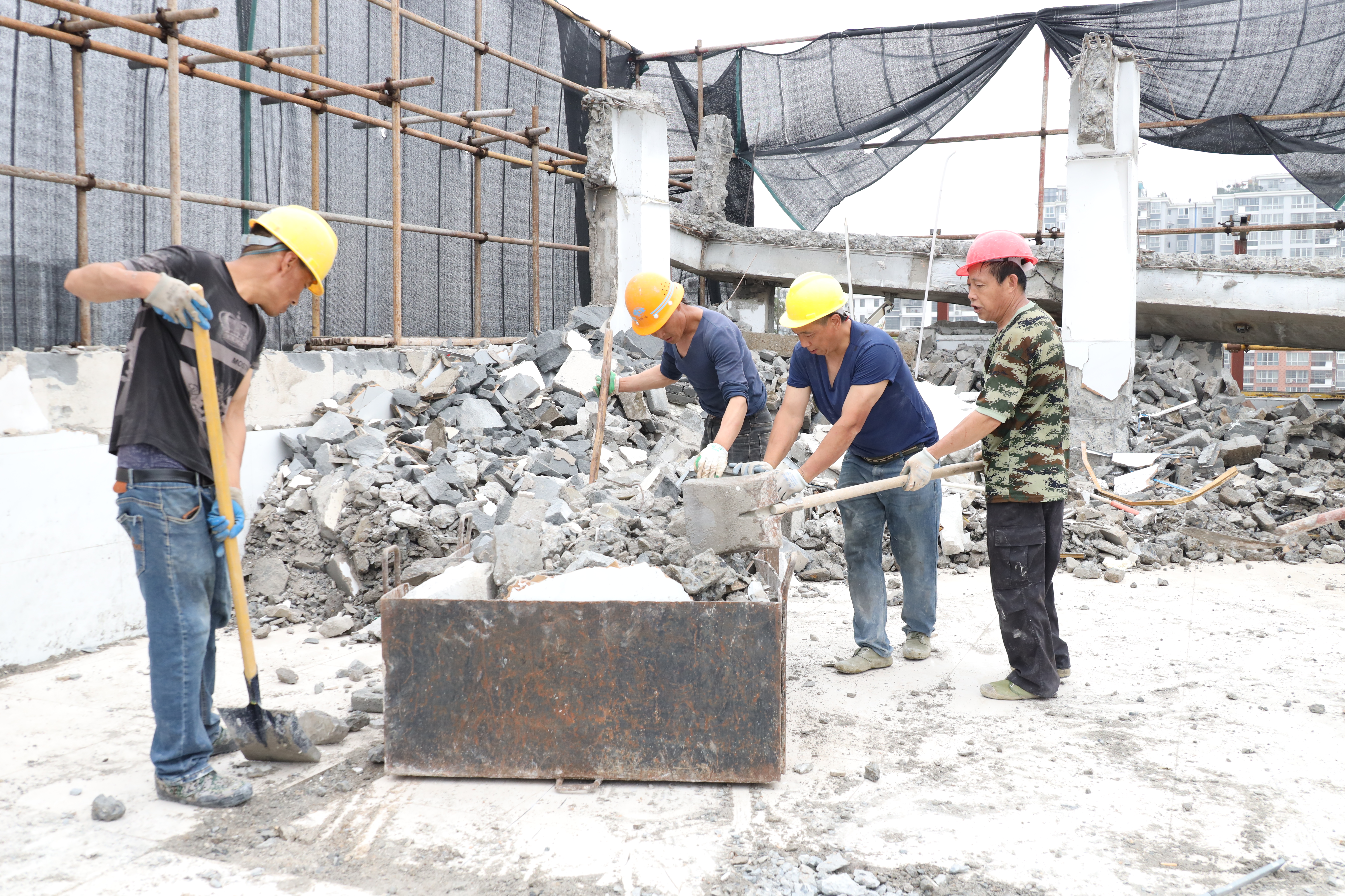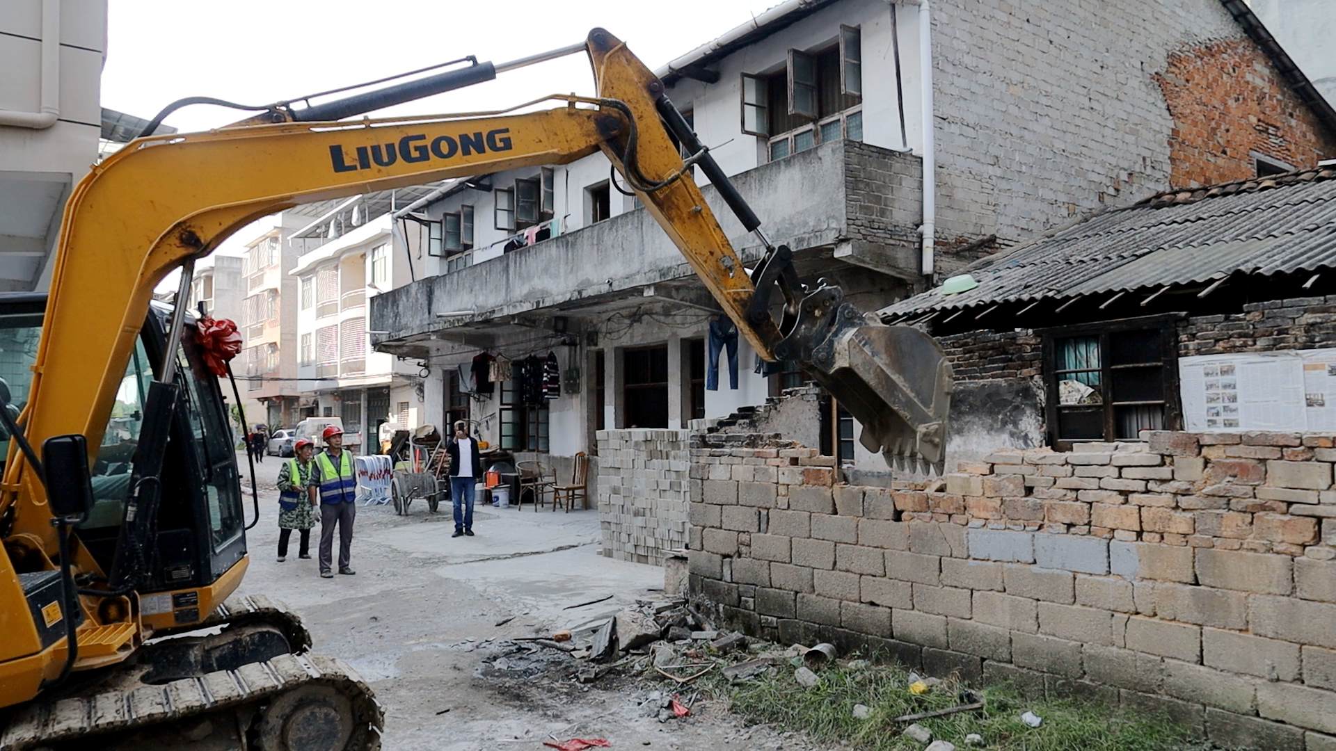 拆违现场,居民积极配合改造施工,主动清理杂物,拆除自家违建车库。