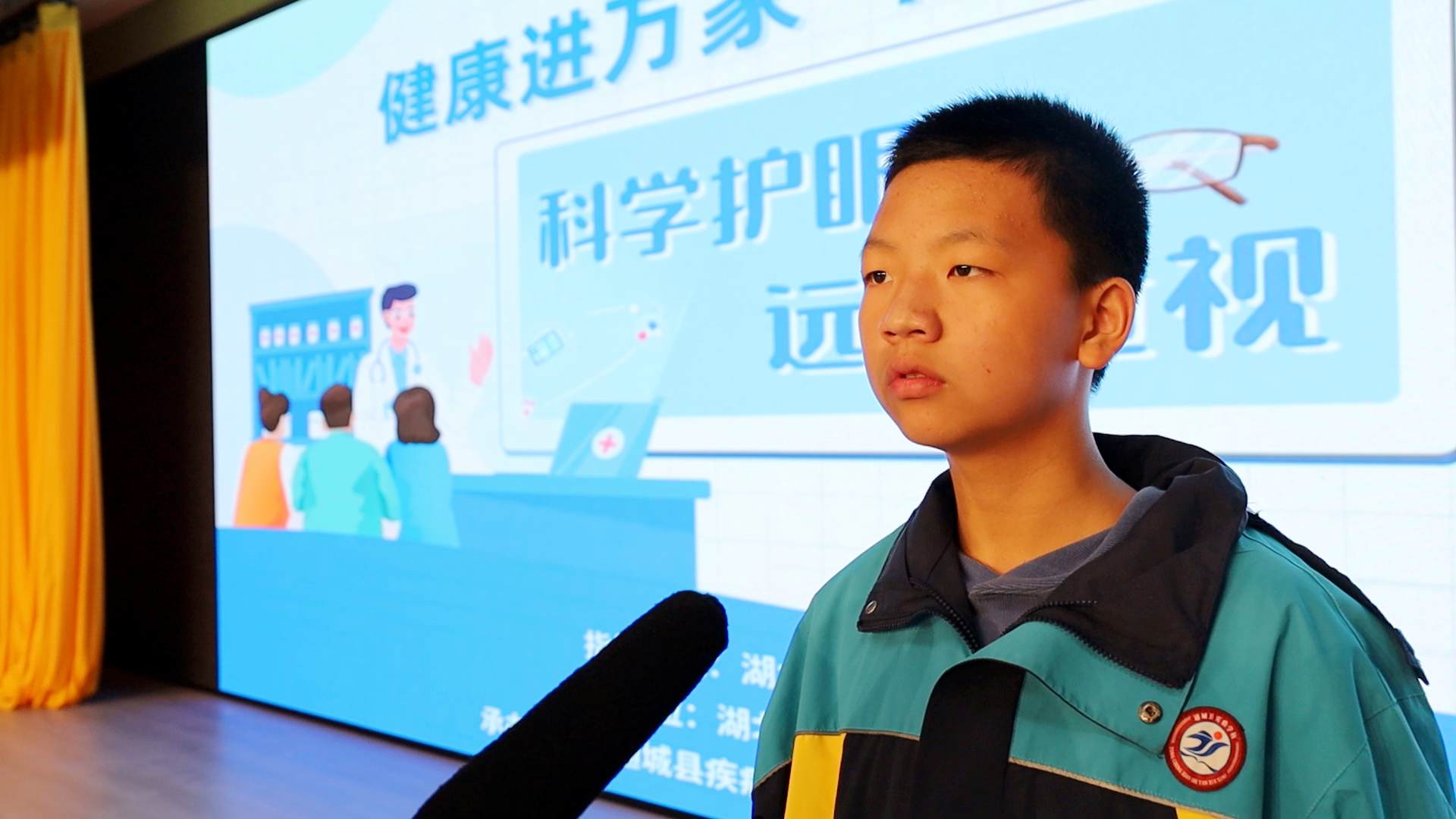通城县实验学校学生 廖政雄:这次讲座,专家和我们说了近视的危害、如何保护视力、远离近视。我听完之后,感觉近视的危害很大,对我们的生活有很大的影响。在今后的学习和生活中,我们要养成良好的用眼习惯,多吃水果和蔬菜,注意用眼卫生,尽可能多参加一些户外活动。