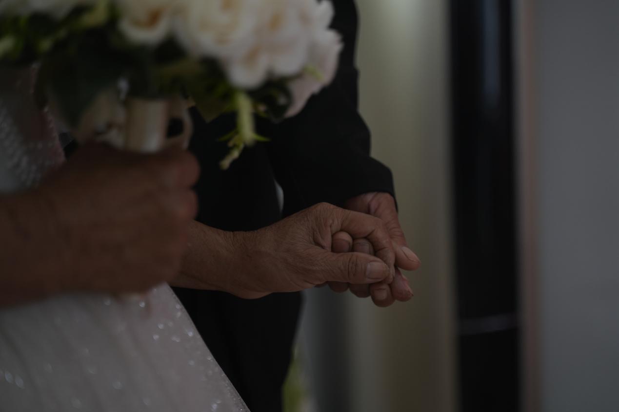 拍婚纱照的过程中,有人是看着打扮了的婆婆挪不开眼,有人是摄影师还没指导就不由自主地亲吻婆婆的额头,有人羞涩的牵着婆婆的手,有人温柔的拨开婆婆右鬓的白发,与其说是在拍婚纱照,我更愿意当作定格浪漫的瞬间,是与你一起慢慢变老的浪漫。