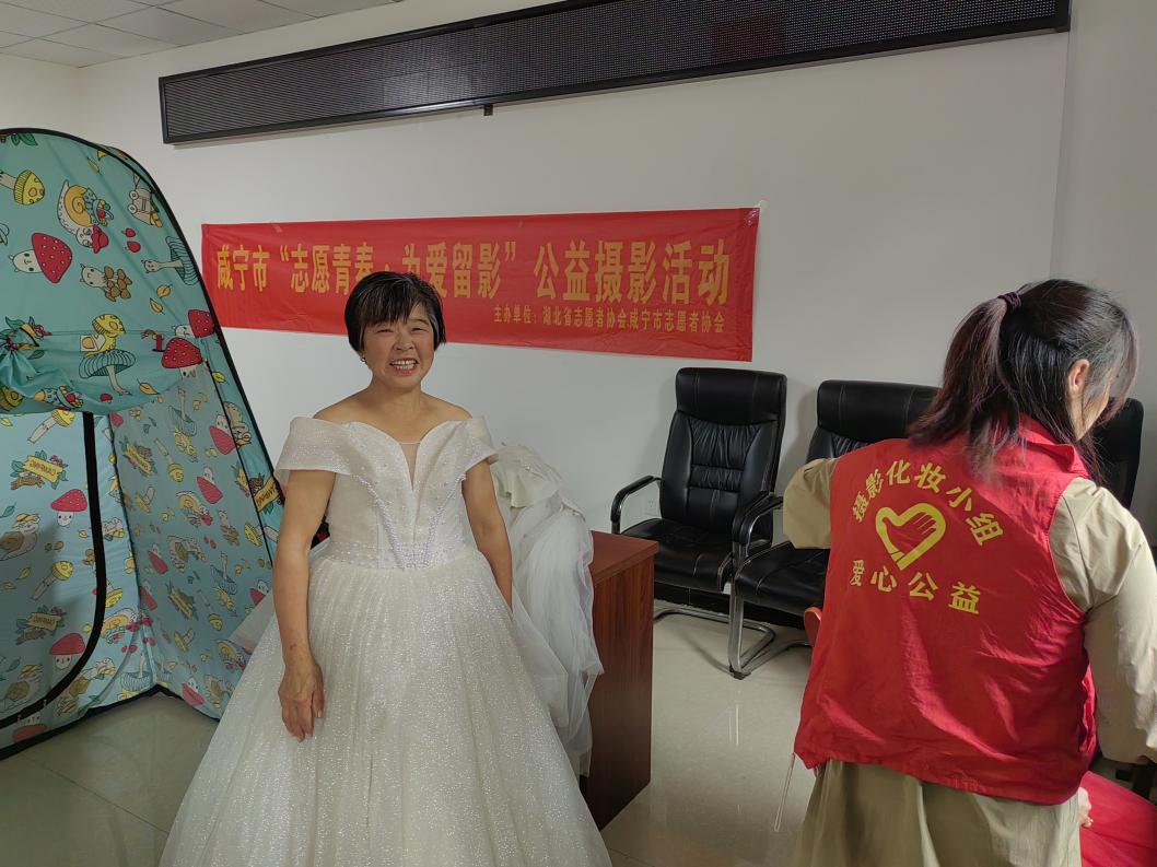 10月28日,通城团县委联合中国人像摄影学会志愿队到麦市镇金麦村开展“志愿青春,为爱留影”公益摄影活动,金麦村近10对爷爷奶奶报名参加,最大的何爷爷有74岁啦!在金麦村党群服务中心二楼内,有化妆师精心为爷爷奶奶们化妆,有小麦粒志愿服务队的志愿者给爷爷奶奶整理礼服,摄影师一会儿教爷爷奶奶摆POSE、一会儿给爷爷奶奶拍婚纱照,好不热闹!