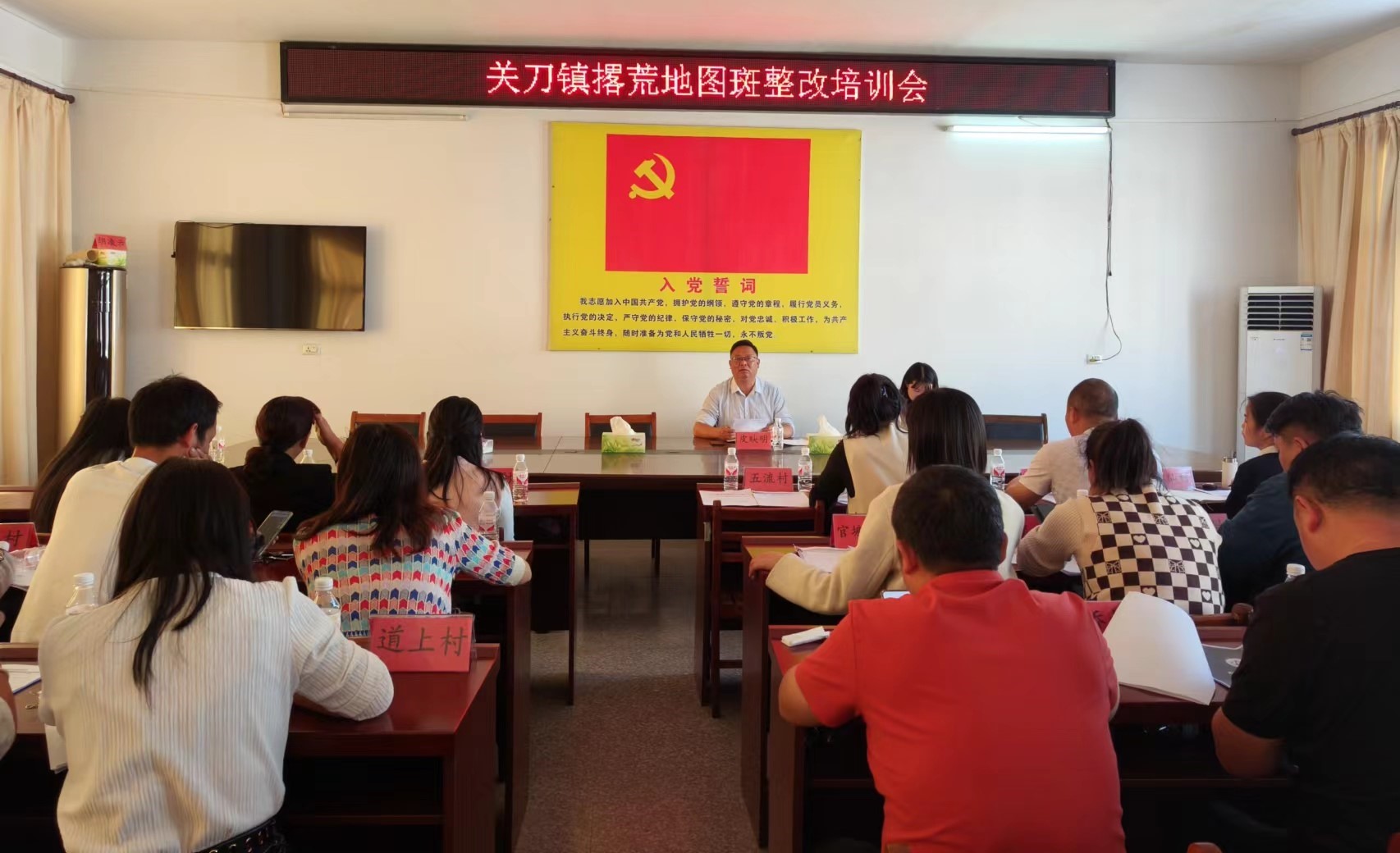 在撂荒地图斑核查整治工作会上,关刀镇对撂荒地核查、整治、复垦复种工作进行部署,并就“农事直通”APP安装注册及使用流程对各村的业务员进行培训,明确管理员、网格员职责,确保撂荒地核查工作高效完成。
