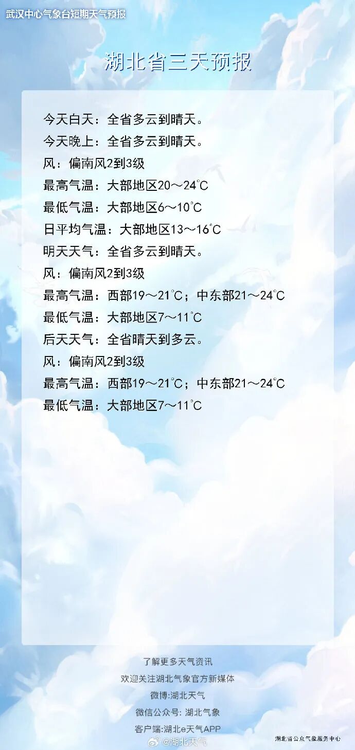 湖北都会延续晴天为主的天气格局但到下周中期将会受到冷空气打扰届时将有降雨大风降温来袭请大家注意关注预报预警信息提前做好防范
