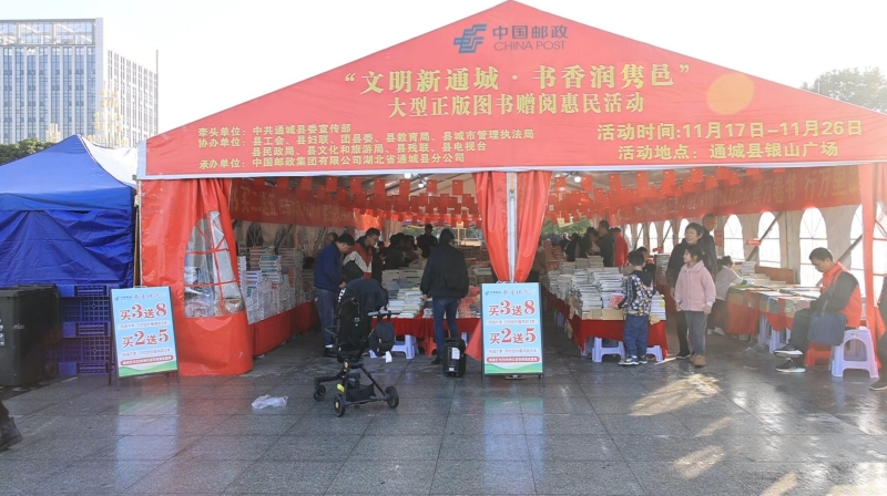 中国邮政集团有限公司湖北省通城县分公司文传部经理 姜贤甫:这几天现场图书展销,日均人流量达到了5万人次,图书日均销量突破了2万册。我们正抓紧备货调度,确保市场供应充足。为配合图书展销活动,公司推出了一系列读书主题活动,最大限度让利于广大读者。