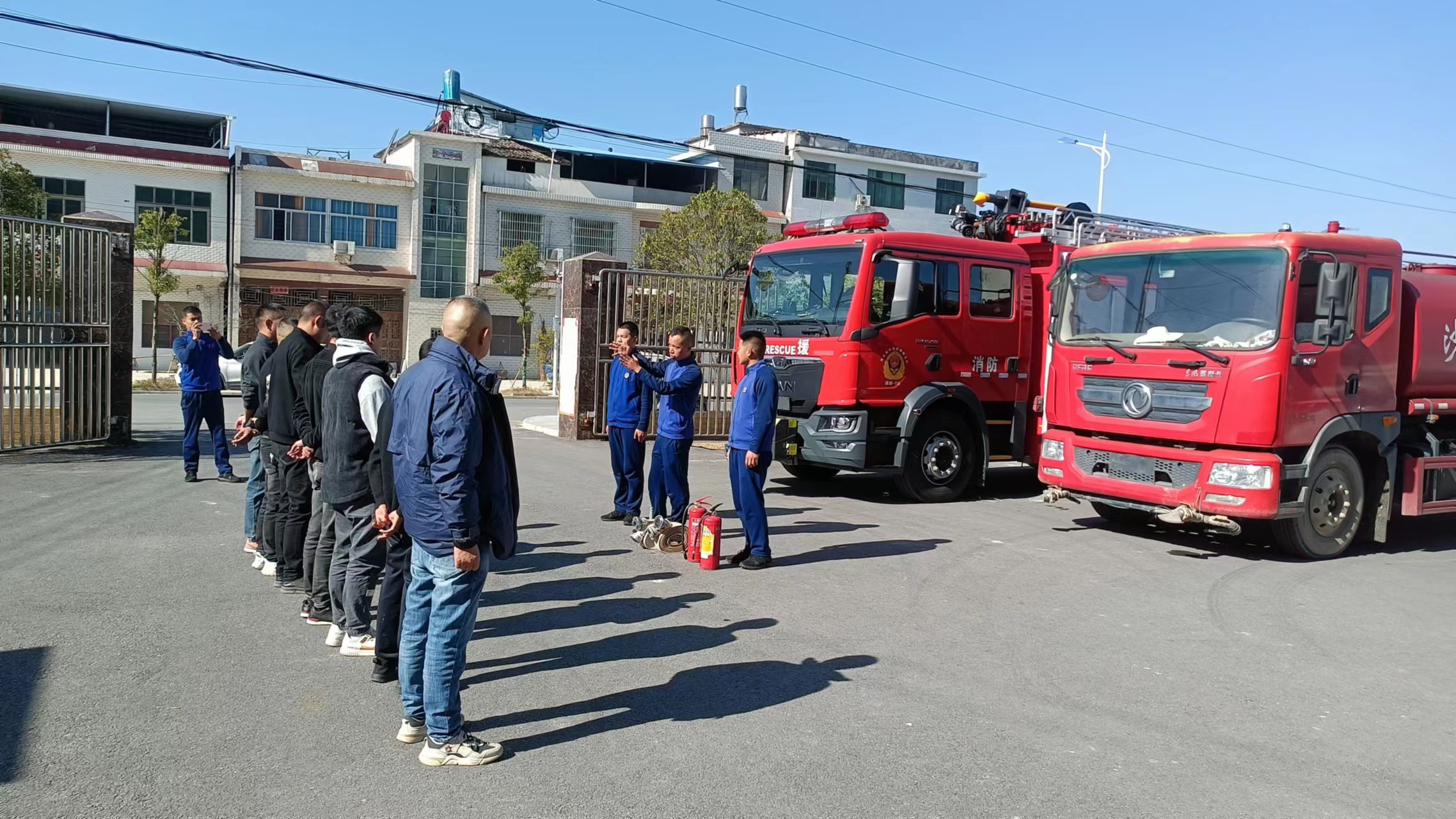 演练现场,教官详细讲解了消防政策法规、常见的火灾类型、初期火灾的正确处理措施及应急逃生疏散技巧,并现场演示了干粉灭火器的操作方法。