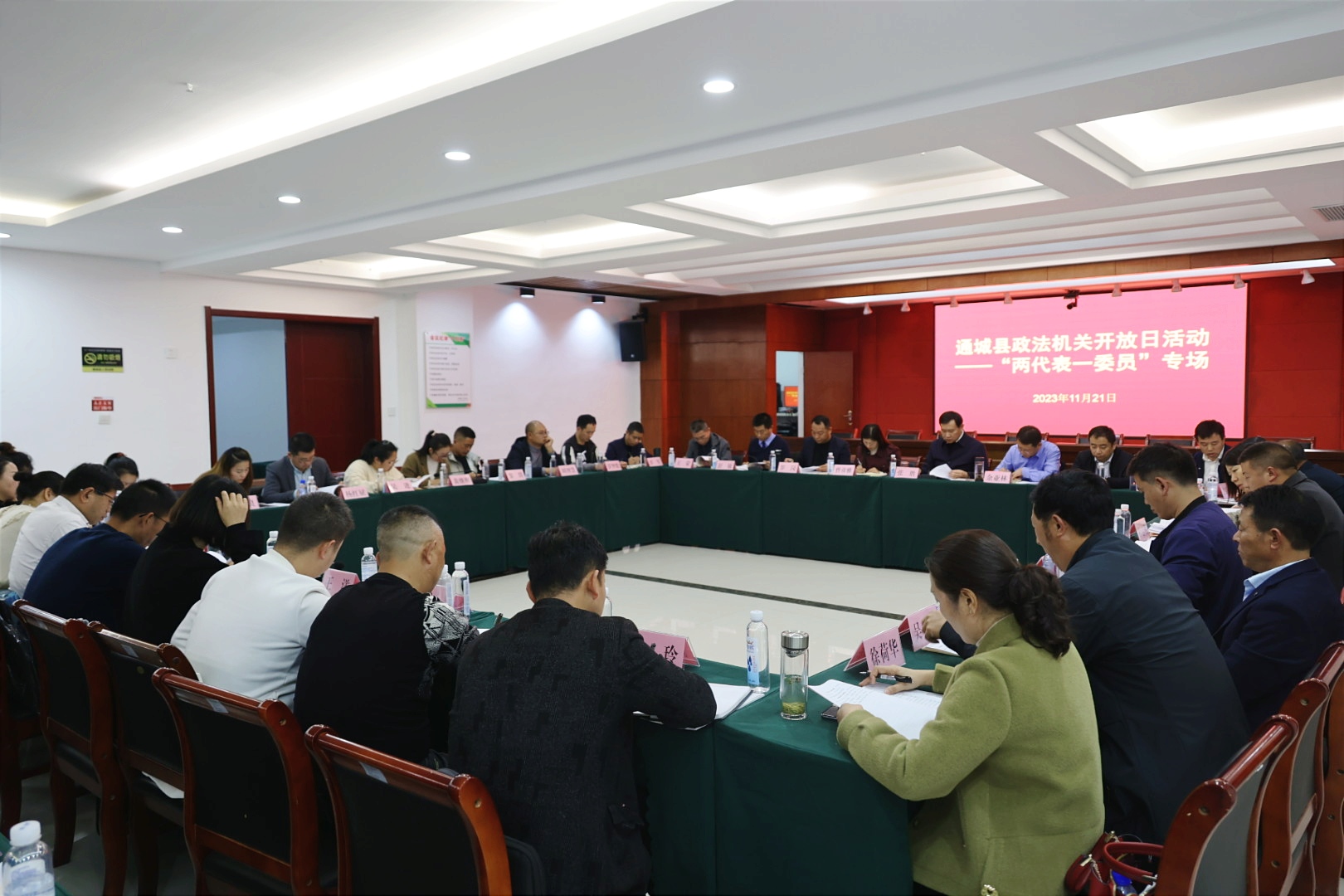 座谈会上,代表委员们集中观看了通城县政法宣传片;县委政法委介绍了今年以来全县平安法治建设和政法重点工作开展情况;参会代表针对全县政法工作及平安法治建设提出了意见和建议。