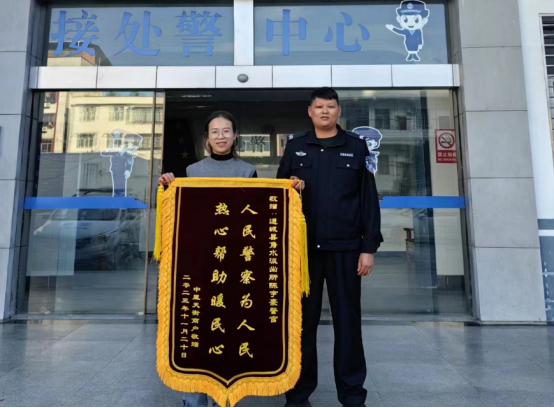 陈女士听取陈警官的建议后,通过加强店内收费管理制度,顾客消费完未买单的情况大大减少。“陈警官在面对群众求助时态度良好,工作又认真,这面锦旗非他莫属!”陈女士笑着竖起了大拇指。