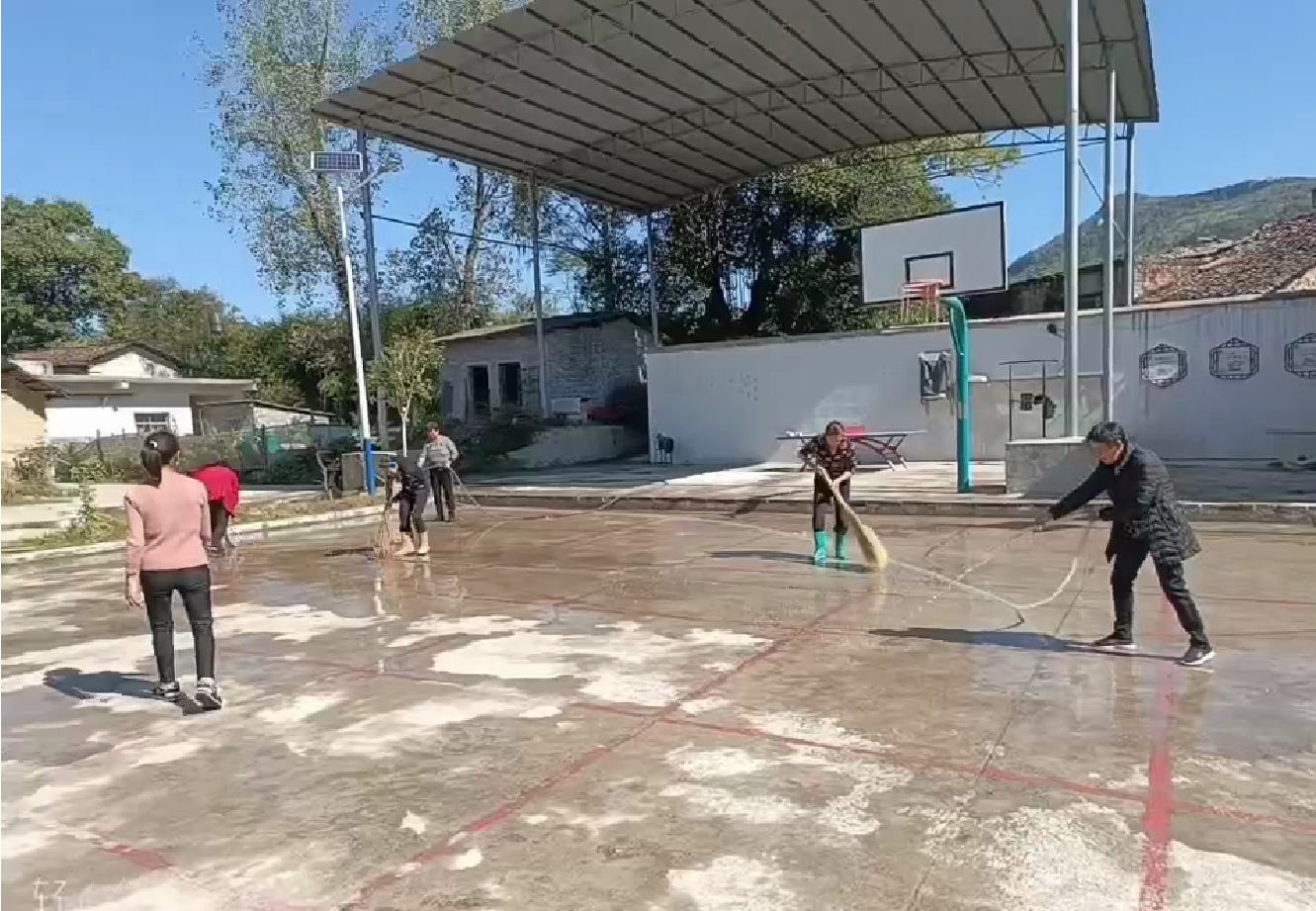 井堂村港下广场是九、十组村民休闲娱乐、运动健身的综合广场,每到晚饭后小朋友们嬉戏打闹,阿姨们练习广场舞休闲健身,好不热闹,但来往村民的增多也带来了垃圾增多的问题。九、十组村民刘建仁、何冬梅、吴永红、葛训娥、陈忠菊、葛荣华等人自愿对广场进行清扫、清洗、清运等工作,他们分工协作,广场焕然一新。