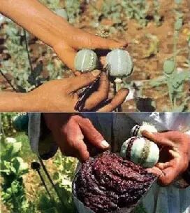 鸦片俗称大烟、烟土、阿芙蓉等,从罂粟植物中提取,具有较强的成瘾性。吸食者往往面无血色,肌体消瘦,目光无神,瞳孔缩小,昏睡,机体先天免疫功能逐渐丧失,易并发多种疾病。