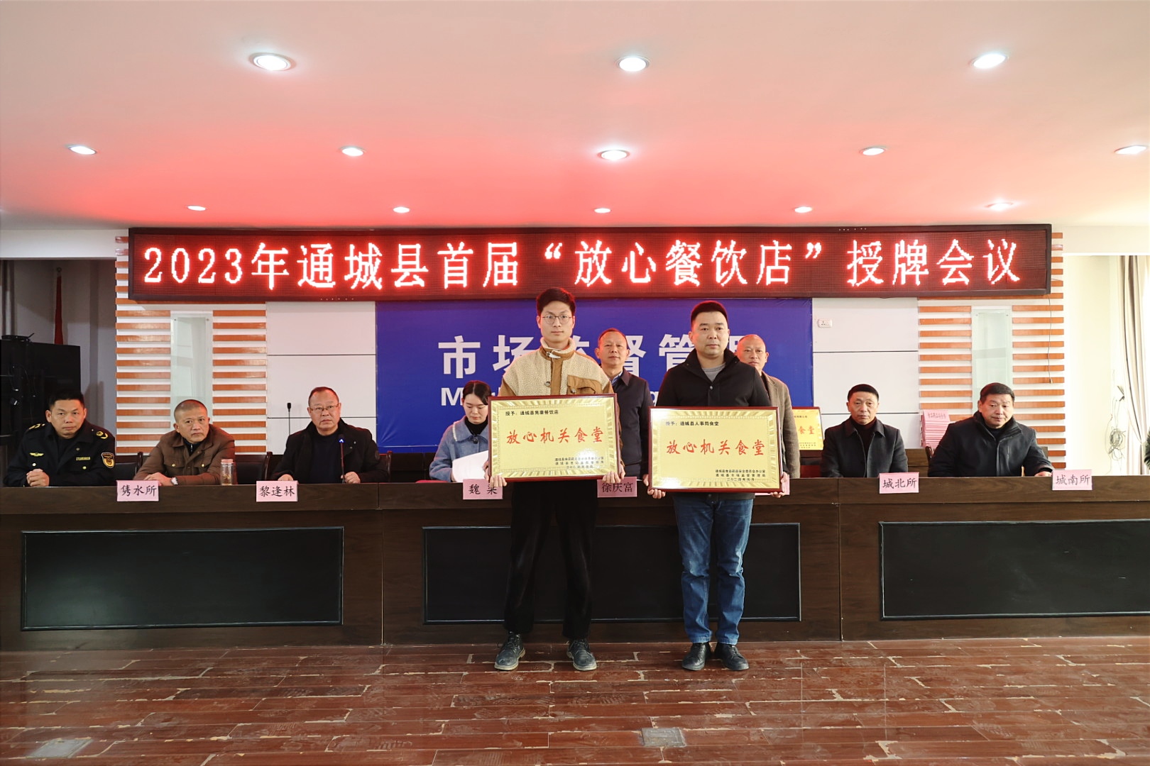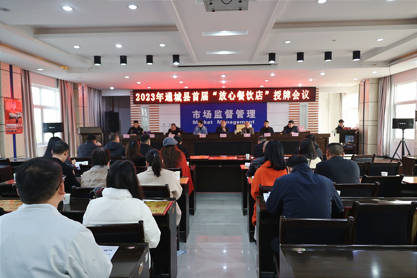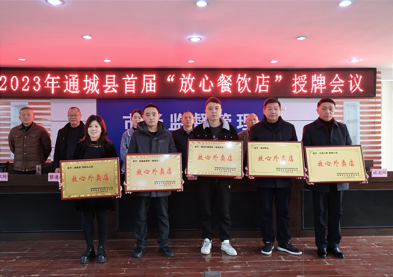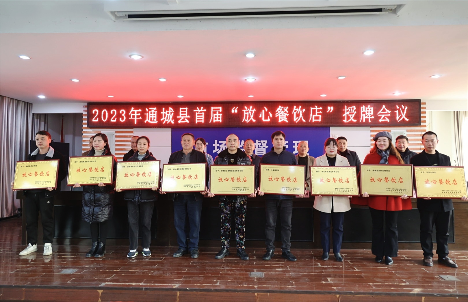 【全媒体记者 李索 通讯员 卢峻】1月11日,通城县市场监管局召开授牌会议,为获得全县首届“放心餐饮店”荣誉称号的31家餐饮单位授牌,进一步提高餐饮业食品安全水平,促进我县餐饮服务质量不断提升。