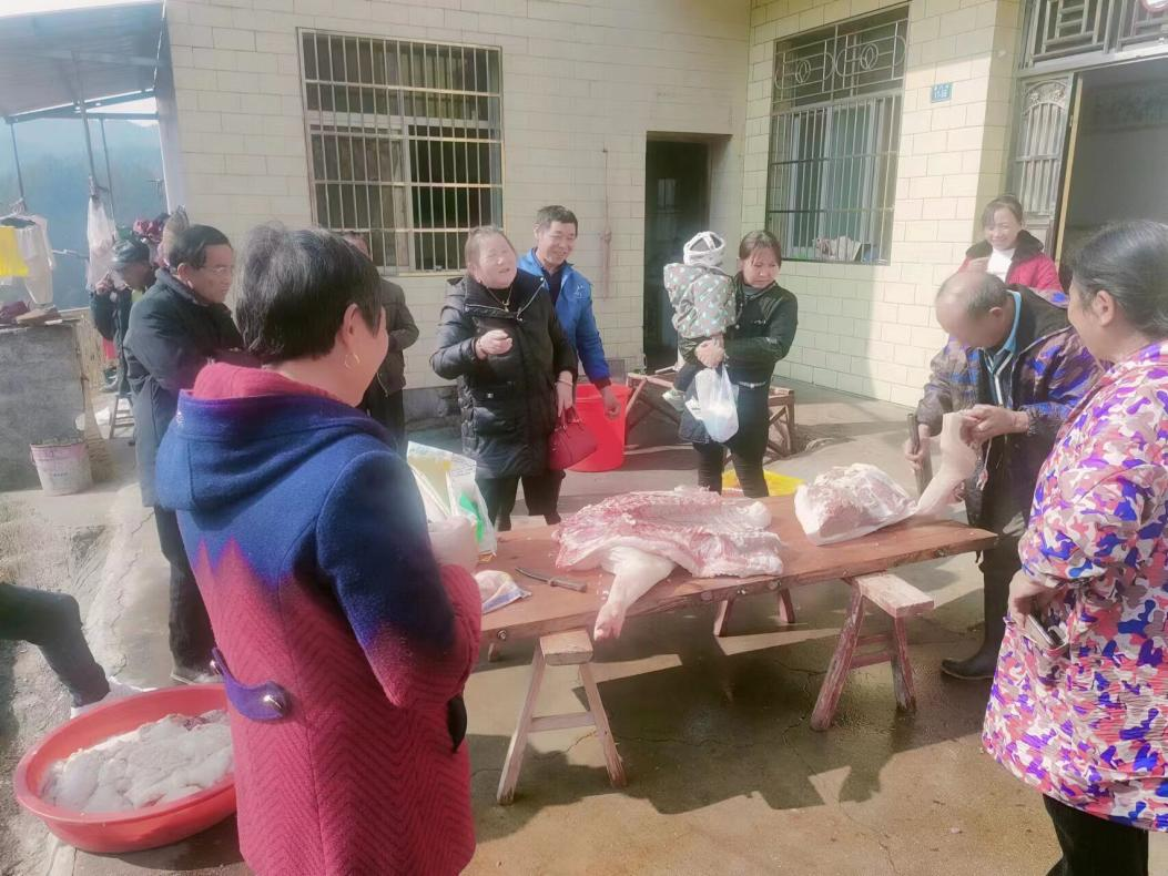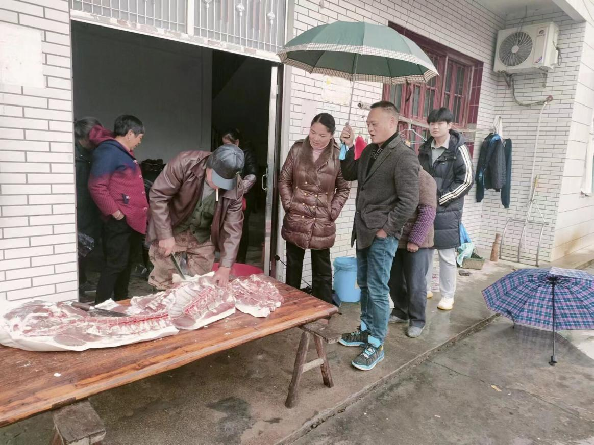 一大清早,雁门村脱贫户吴雄明家就围满了闻讯而来购买年猪的帮扶干部们。吴雄明家平时主要的收入来源就是养猪,正当他为这几头猪的销路发愁的时候,县教育局驻雁门村第一书记王道良联系上了他,表示将动员帮扶干部一起帮助销售年猪。