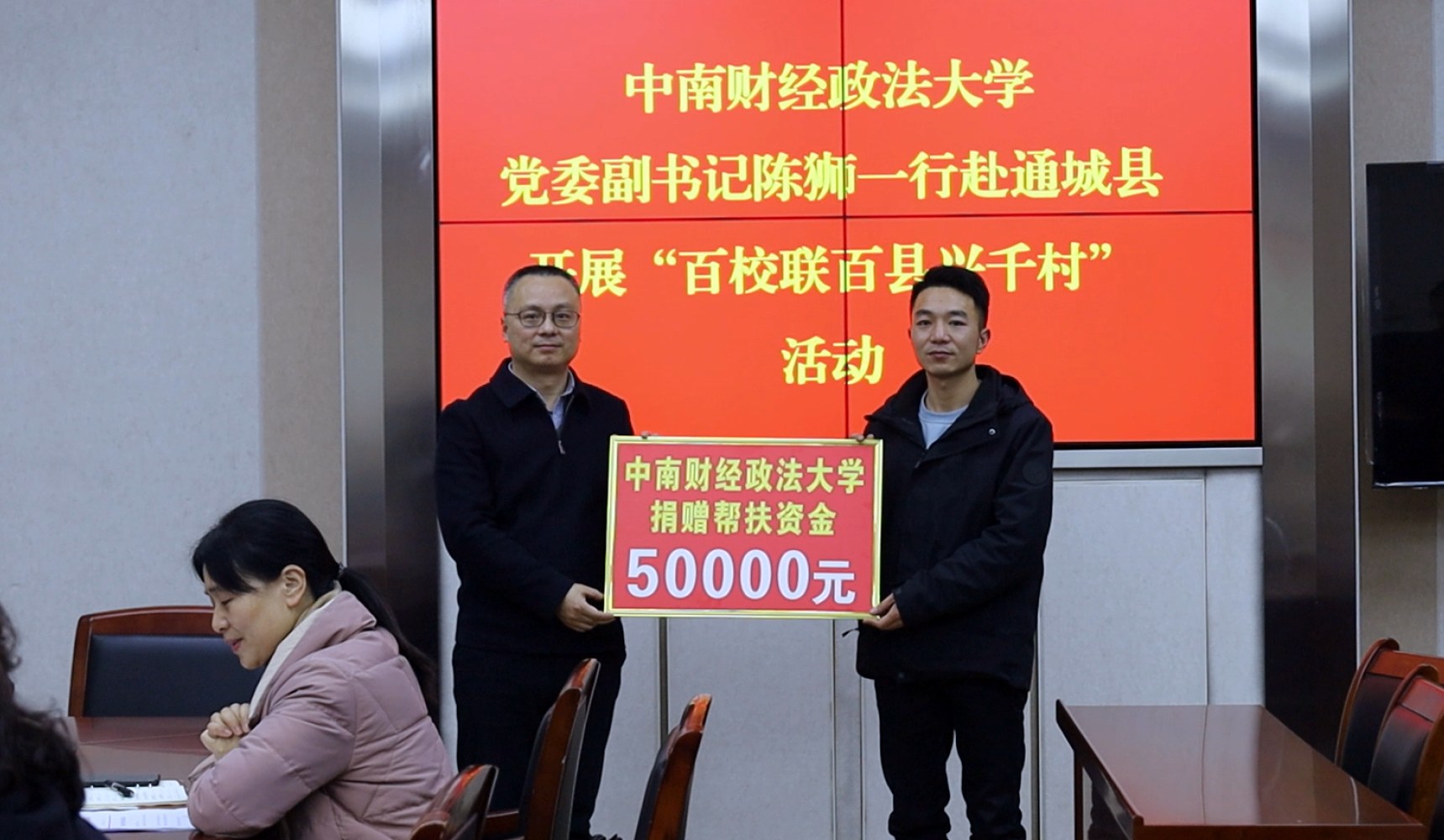 座谈会上,中南财经政法大学与通城县人民政府签订了《“百校联百县兴千村”行动合作意向书》;宣读了中南财经政法大学赴通城县挂职干部任职文件;举行了中南财经政法大学向红石村的捐赠仪式。