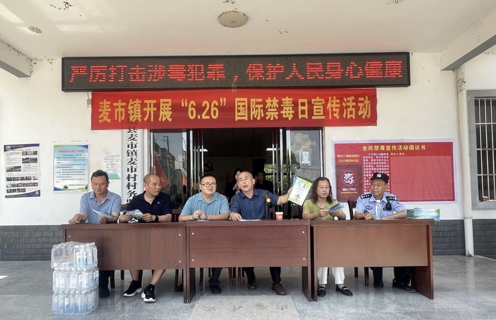 麦市镇各村(社区)、镇直各部门通过每月主题党日、屋场会、走访入户等时机进行禁毒知识普及,全面开展“六进”宣传活动。每月定期组织禁种、禁制、禁吸铲毒排查行动,全年共开展6次声势浩大的宣传活动,活动期间全镇共张贴禁毒宣传通告30份,下发禁毒宣传手册1000余份,动员银行、各村(社区)、个体户等利用电子显示屏播放宣传标语23条,制定永久性宣传标语口号2条,永久性宣传栏24块,横幅26条;建立了较为完善的中小学校禁毒宣传教育阵地,并明确落实预防教育“五个一”及“青骄第二课堂”,每学期普遍开设禁毒法制讲座和禁毒知识课,组织学生开展禁毒征文、演讲和制作手抄报等活动。同时,通过“豆香麦市”公众号、视频号制作发布禁毒系列推文、短视频等,营造“线上+线下”全方位宣传氛围。