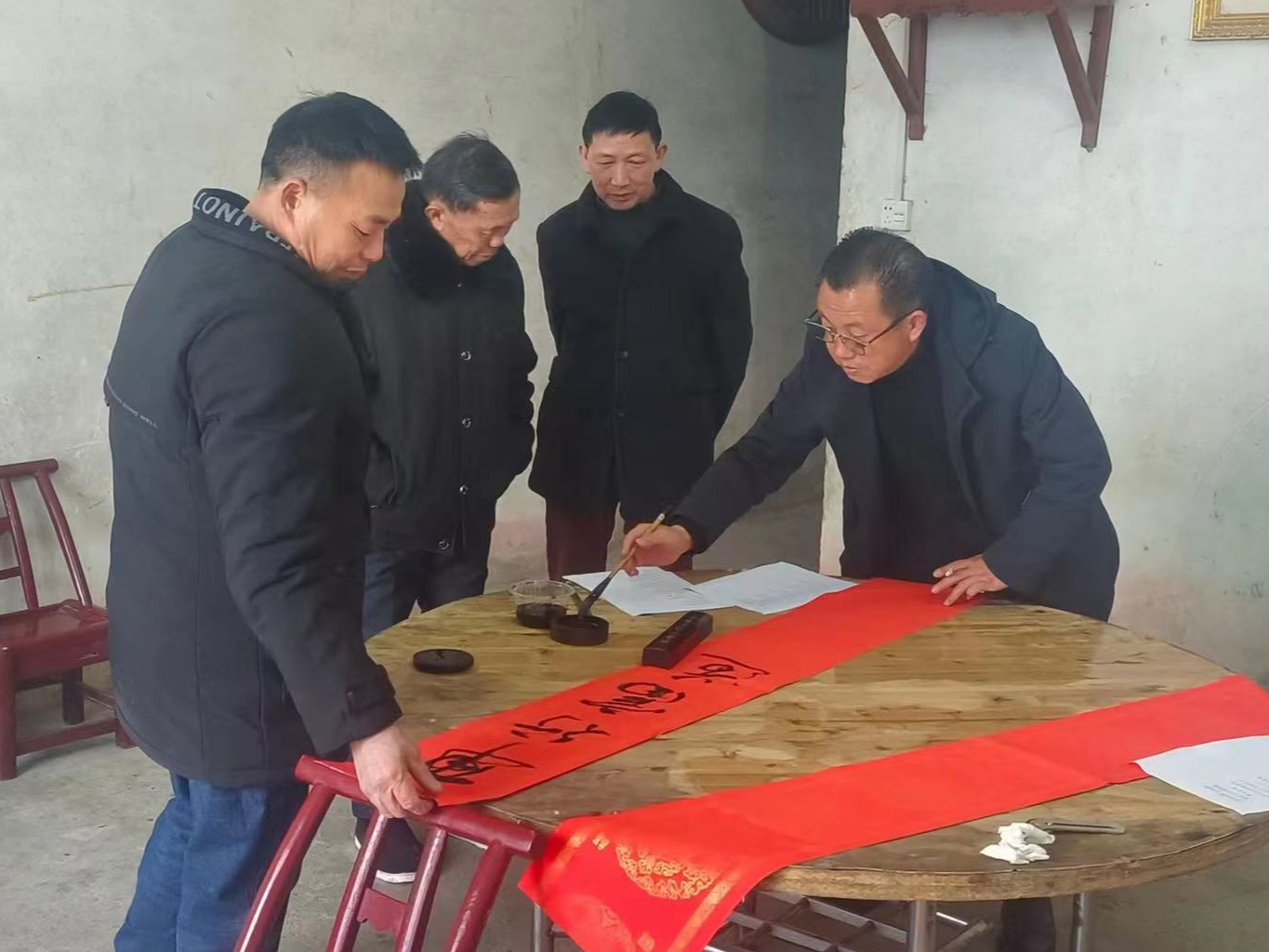 卷卷春联送祝福,浓浓墨香迎新春。1月17日,咸宁军分区、咸宁职业技术学院驻金山村工作队和金山村“两委”干部齐聚聂家屋场,你裁纸、我研墨、他挥笔。不一会儿,一副副赞美生活、歌颂党恩、充满吉祥祝福的春联跃然纸上。