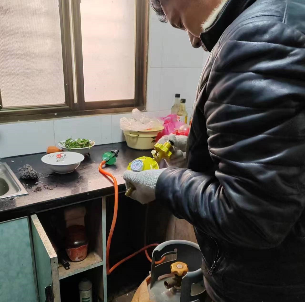 “方大姐,你这个液化气钢瓶看起来很新,是新买的吧!”道上村党支部委员丁高祥向村民问道。“是啊,快过年了,家里人都要回家团圆。因为怕家里的液化气不够用,所以我买了个新瓶罐。大火炒菜才好吃哦!”听到村民的回答后,丁高祥赶紧检查新瓶罐瓶体及附件角阀、减压阀各部分所连接处是否接牢,并向村民讲解燃气检查方法及泄露后的正确处置方法,提醒村民要定期对家里的燃气软管进行检查,提高村民燃气安全使用意识。
