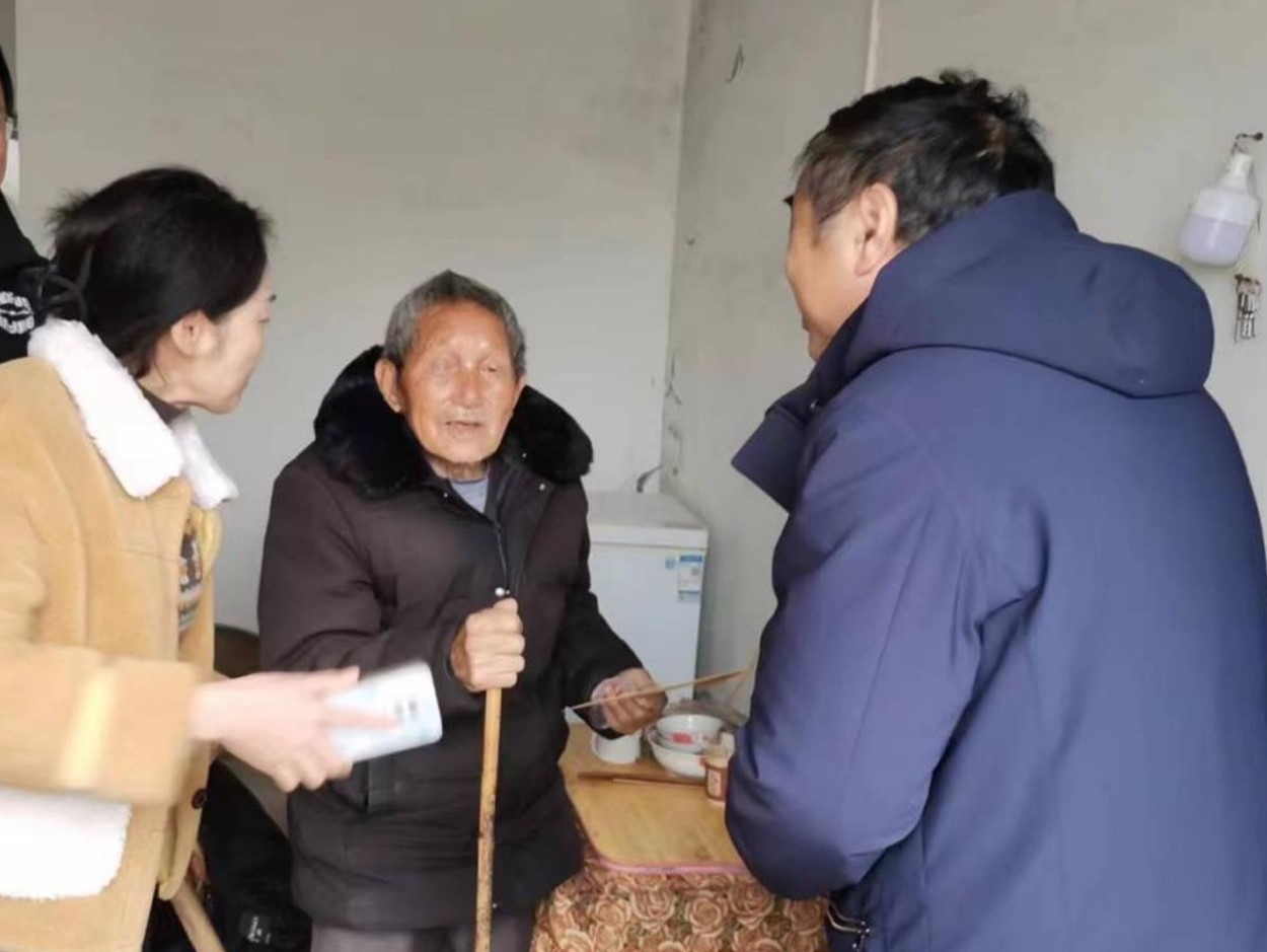 慰问组首先来到了集中安置点的困难群众丁来富老人家中,丁来富年过八旬,没有劳动能力,与儿子相依为命,靠低保、公益性岗位等惠农兜底政策过活。慰问组仔细询问丁来富的家庭情况和过冬物资储备,并送上慰问金和新春祝福,再三叮嘱老人照顾好身体。
