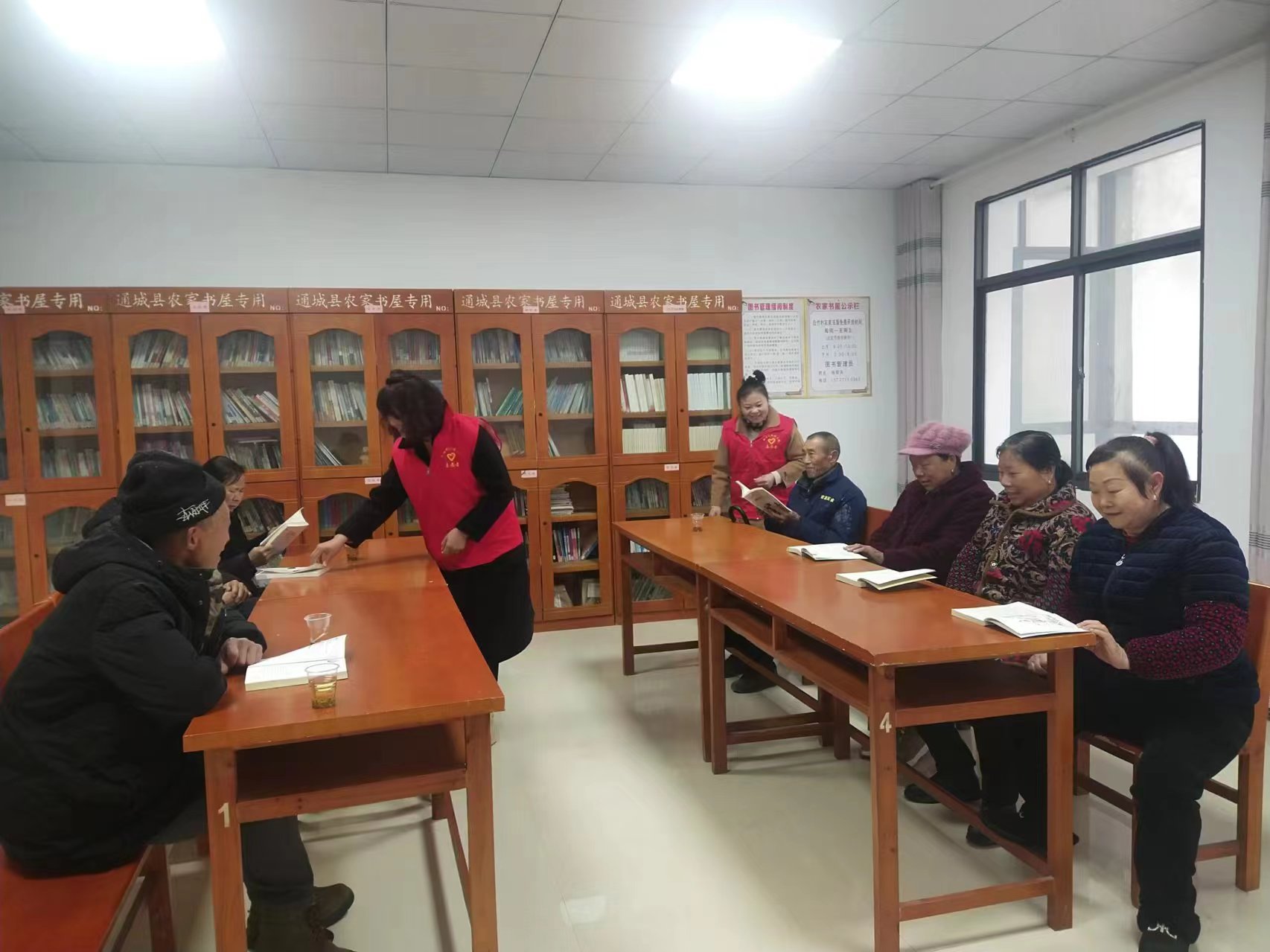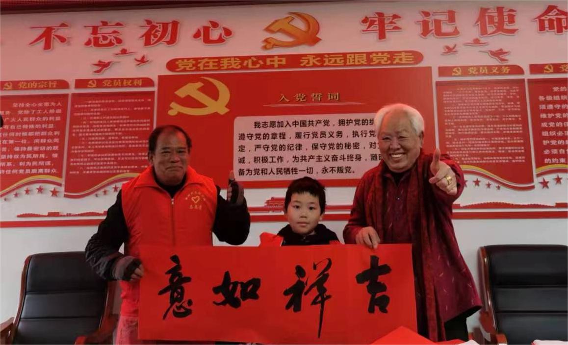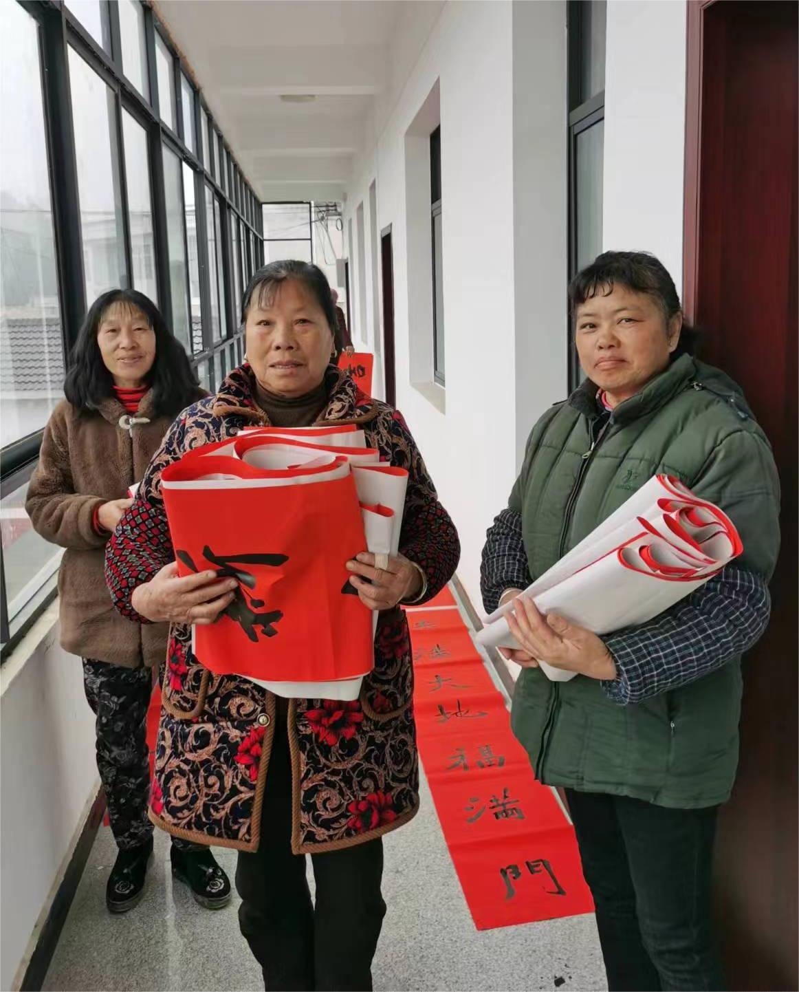 村民们看着手里充满墨香的春联,脸上露出了开心的笑容。“感谢镇里、村里邀请书法协会为我们写春联,让我们可以免费领到满意的春联。你看这字写得多好呀,贴上这样的春联真有年味!”领完春联,村民们又接着参与了主题阅读活动,志愿者向村民们宣传讲解了党的二十大精神和习近平文化思想。