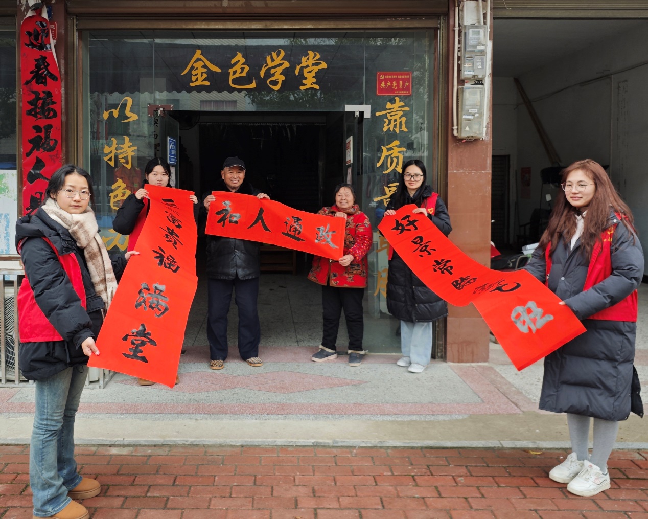 现场的志愿者们也将新春对联一一赠予居民群众,让街坊邻里齐齐享“福”。