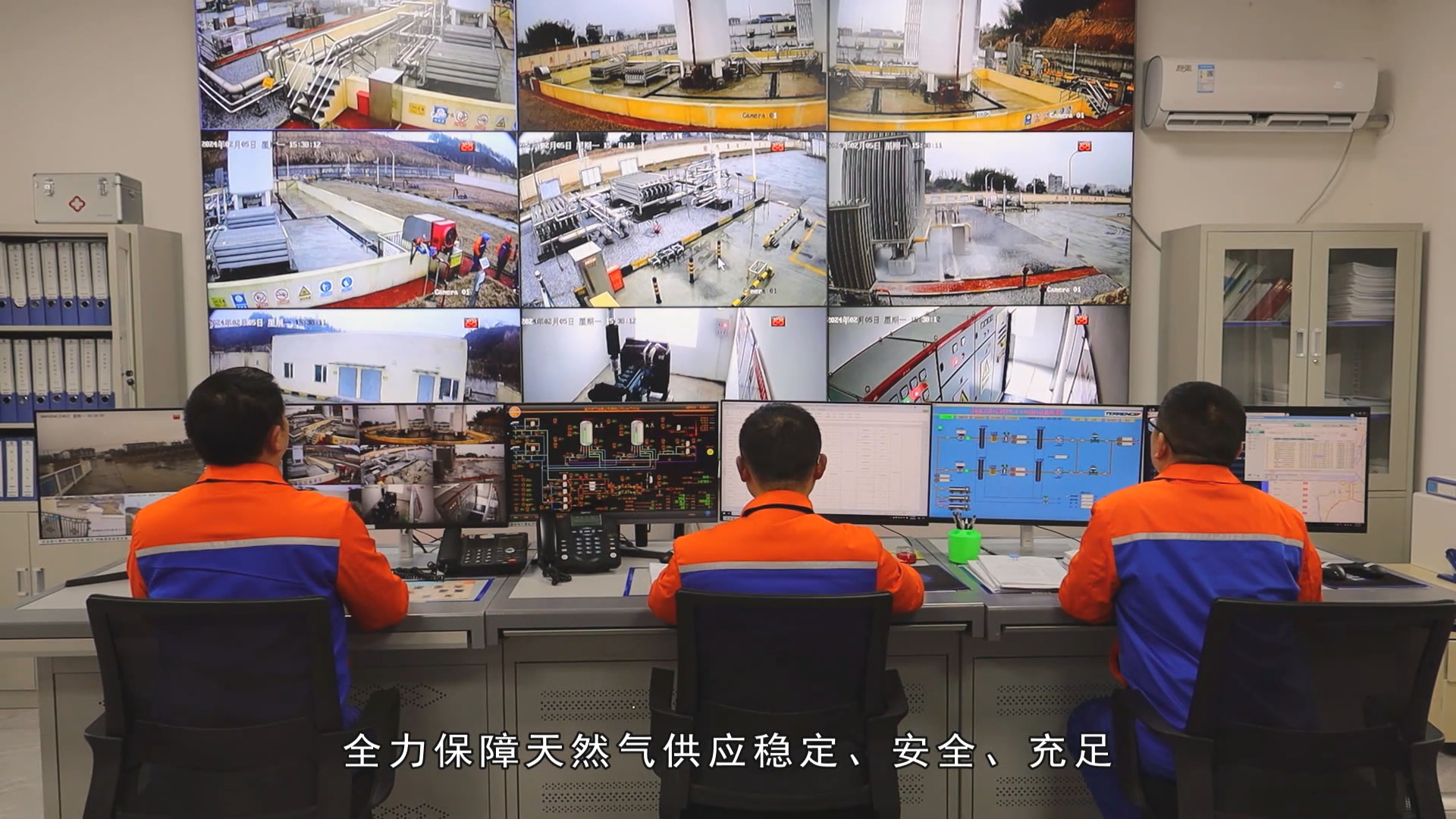 为保障全县天然气安全平稳供应,场站调度班组利用LNG、CNG双气源保供,场站每日储存气量不低于18万方,可保障全县7天民生基本用气需求。场站坚持24小时值守调度,接听用户热线,解决用户诉求;通过智慧燃气系统,全天候对场站运行、城区燃气管道压力、流量等进行监测,确保节日期间燃气安全稳定输配,让老百姓放心用气。