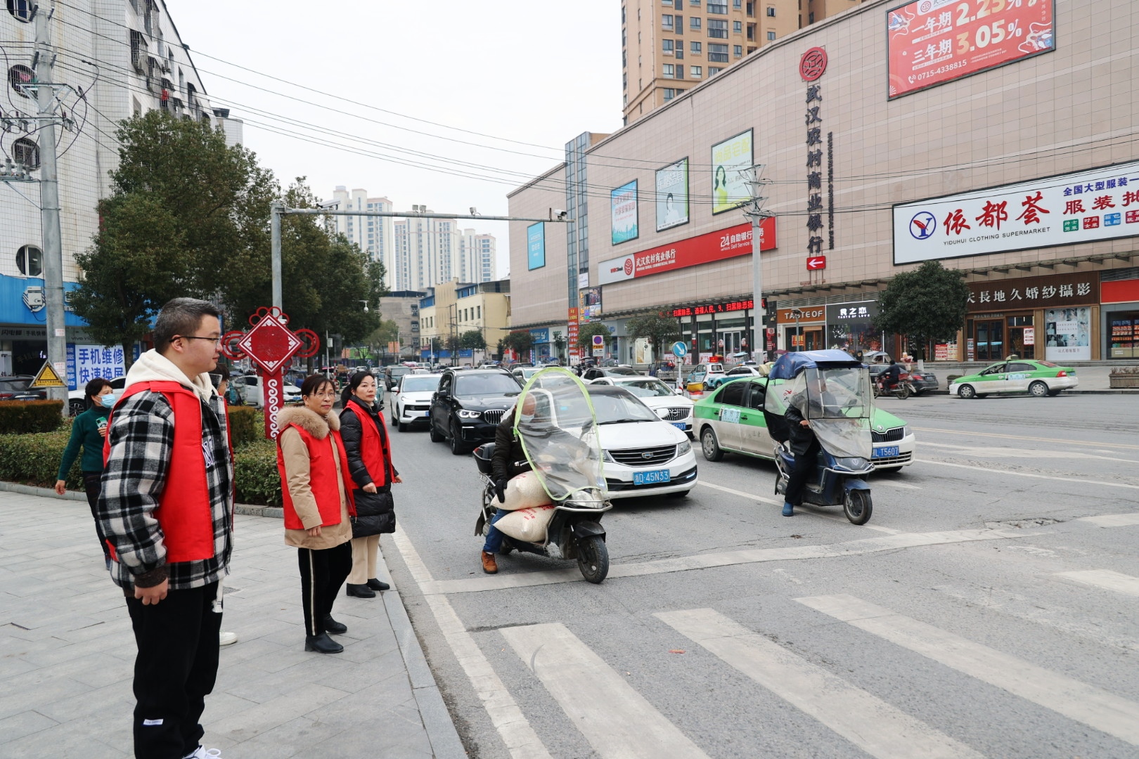 日前,记者在城区车流量较多的九眼桥、三合中百广场等路段看到,志愿者们身穿红马甲,两个人一组,在马路两边引导行人及车辆安全通行。对过马路有困难的行人,他们会主动帮助,碰到有行人问路,他们也会热情告知,为市民安全出行提供服务。