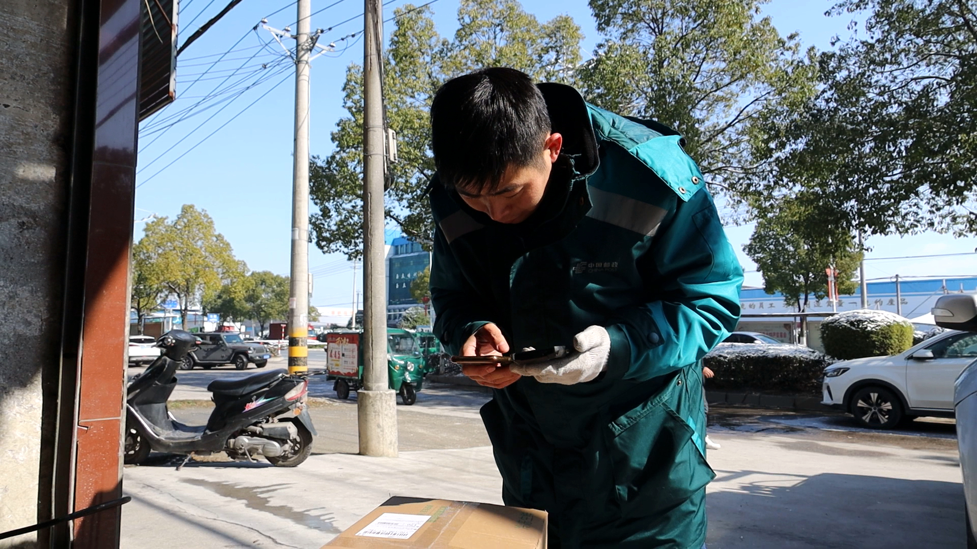 中国邮政通城分公司快递员 刘祥晖:这份工作说实话确实很辛苦,下雨下雪天时,别人在家烤火,我们还是在外面跑。但是每天把一车货拉去送,把老百姓过年的物资、年货送到家,看到他们开心过年的样子,我们心里感到充实。