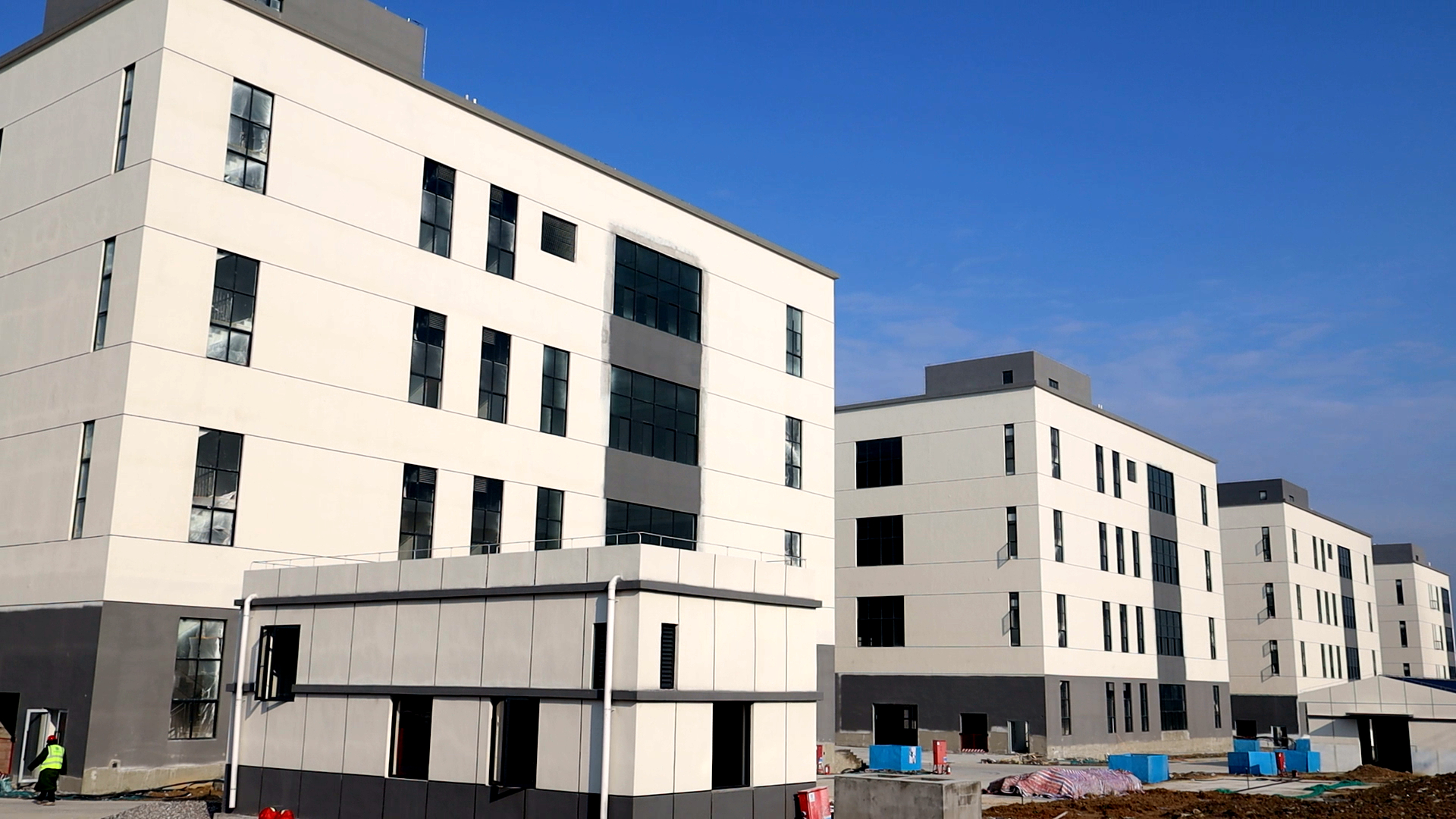 中建科工通城研磨产业园项目党支部书记 胡朝辉:目前项目一期八栋厂房已经主体封顶,内部的装饰装修及相应的机电安装已经完成95%,厂区内部道路的结构面层已经完成,2024年计划是完成厂房的整体交付。