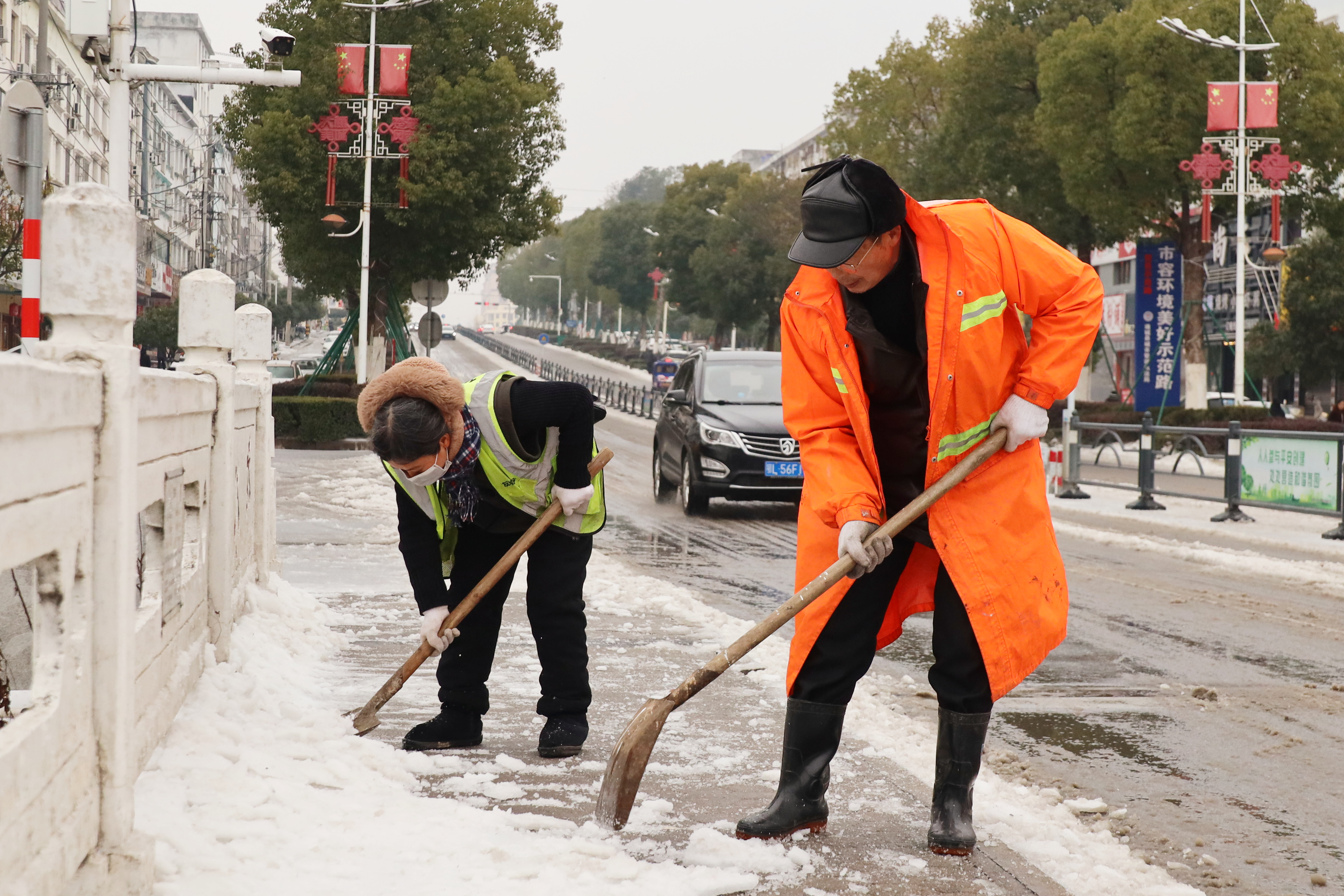 21日晚,通城县发布暴雪橙色预警信息:预计未来6小时,全县降雪量将达10毫米以上,且将出现5厘米以上的积雪,并伴有道路结冰。一城风雪,全城守护。全县城管系统200多名干部职工全员上路,从凌晨起开始除雪保畅。针对此次雨雪冰粒齐集的特点,城管部门组成了“铁铲战队”,对城区主干道、桥梁结冰处开展破冰铲雪。