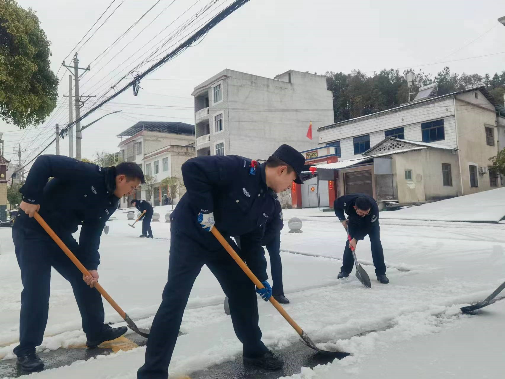 【通讯员 皮鑫 胡广】2月22日,通城县北港镇受降雪天气影响,路面湿滑,北港派出所全员出动,投入到冰雪天气道路安全工作中,为群众出行“护航”。